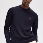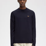 Fred Perry Classic Crew Neck Jumper - Navy/Dark Caramel