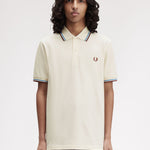 Fred Perry Twin Tipped Polo Shirt - Ecru/Court Blue/Bordeaux