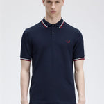 Fred Perry Twin Tipped Polo Shirt - Navy/Snow White/Burnt Red