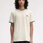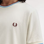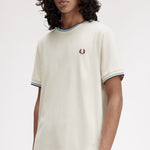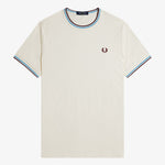 Fred Perry Twin Tipped T-Shirt - Ecru/Court Blue/Oxblood