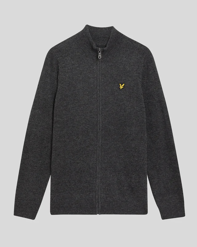 Lyle & Scott Lambswool Blend Zip Cardigan - Jet Black Marl