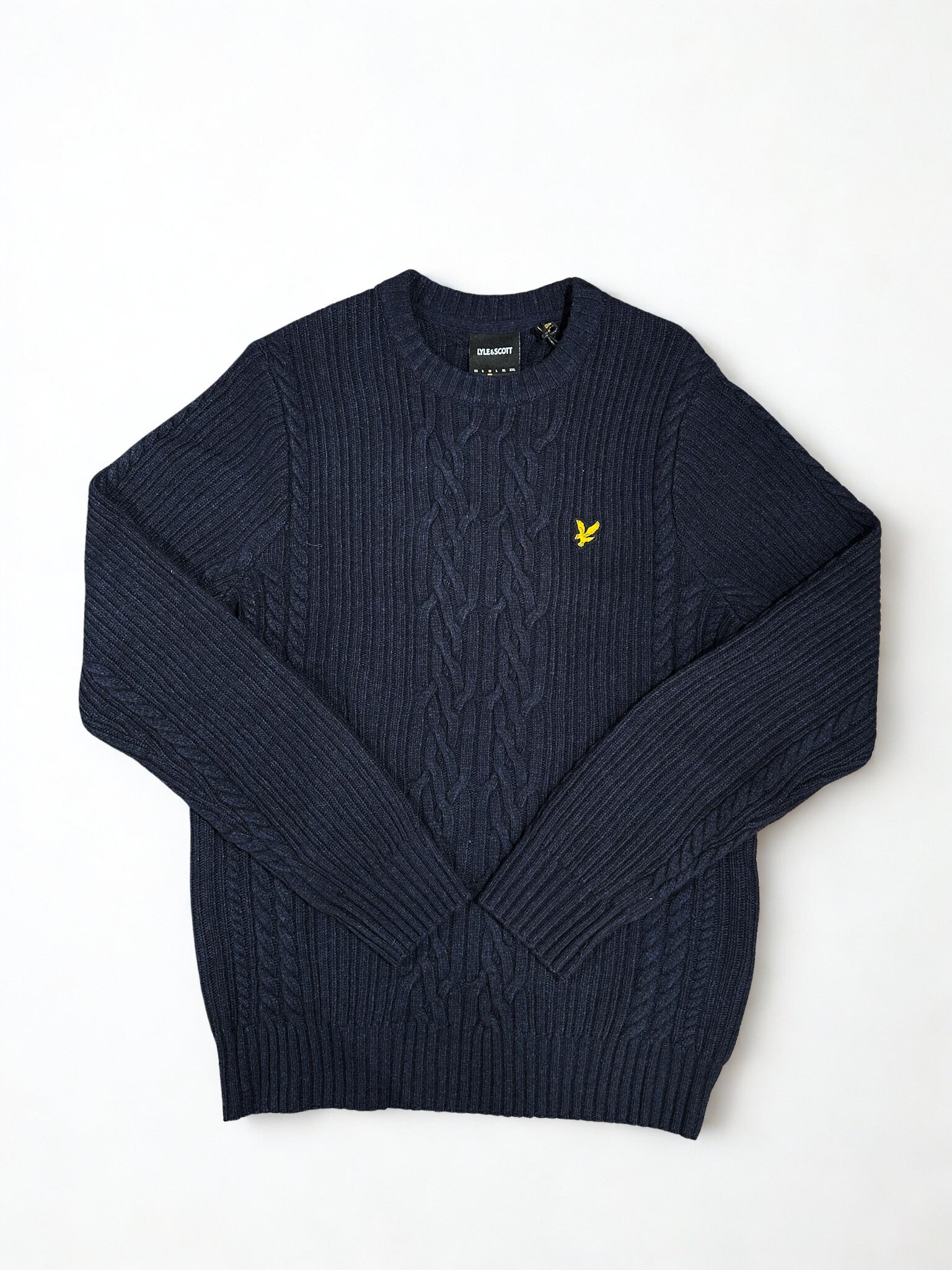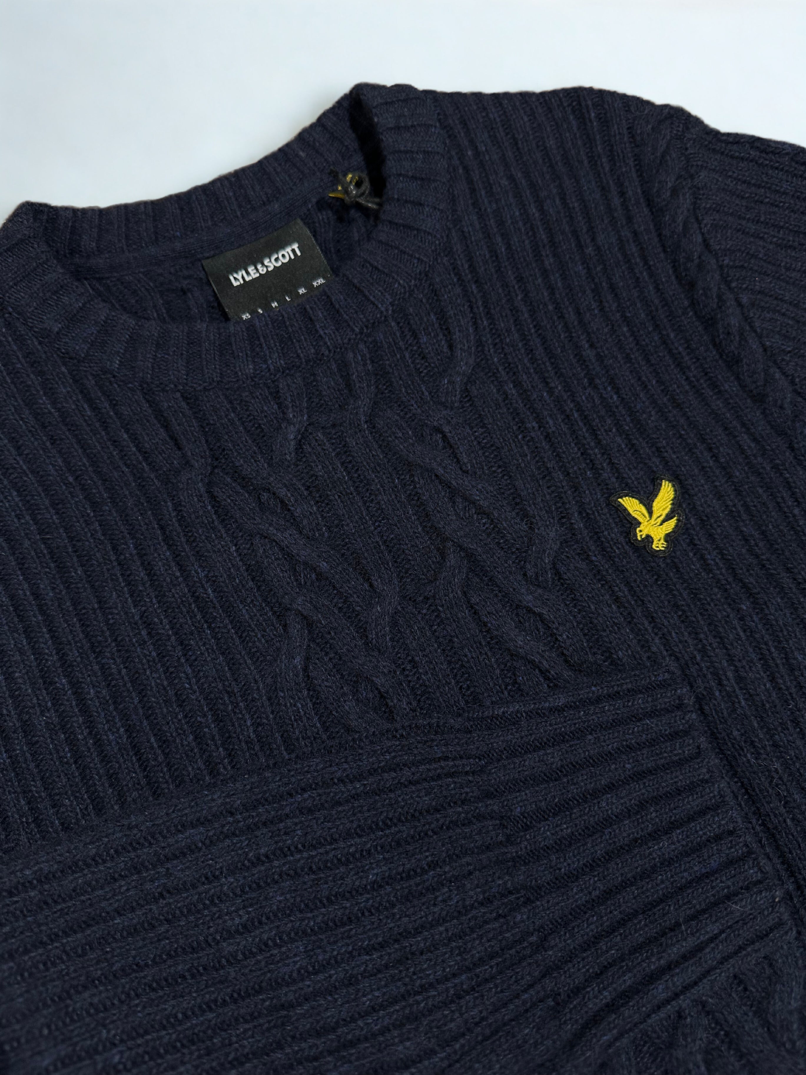 Lyle & Scott Ribbed Cable Knit Jumper - Dark Navy Marl