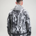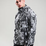 Questa giacca è realizzata in un leggero guscio in nylon ripstop semitrasparente con sovrastampa mimetica Woodland. Presenta cappuccio, colletto interno e inserti sulle maniche in nylon stropicciato a contrasto. Due ampie tasche a soffietto con chiusura in velcro sul petto,