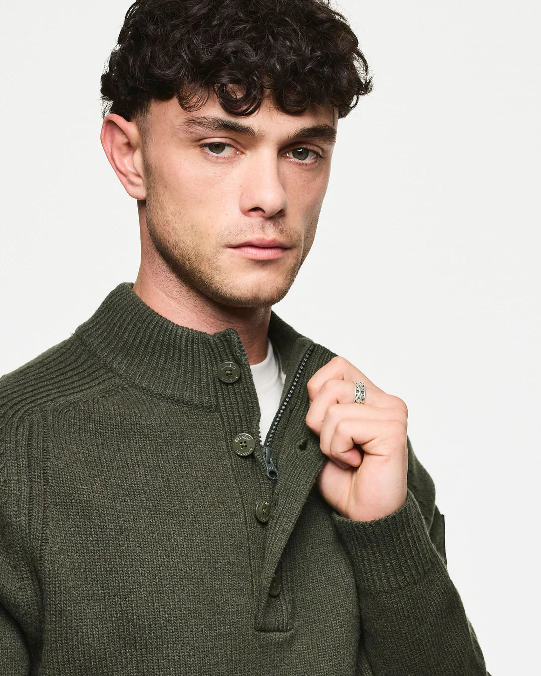 Il maglione Castillos Wool Quarter Neck è realizzato in un filato di lana pregiato calibro 5 in maglia jersey che offre un calore naturale e morbido.