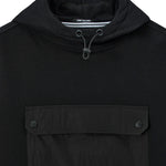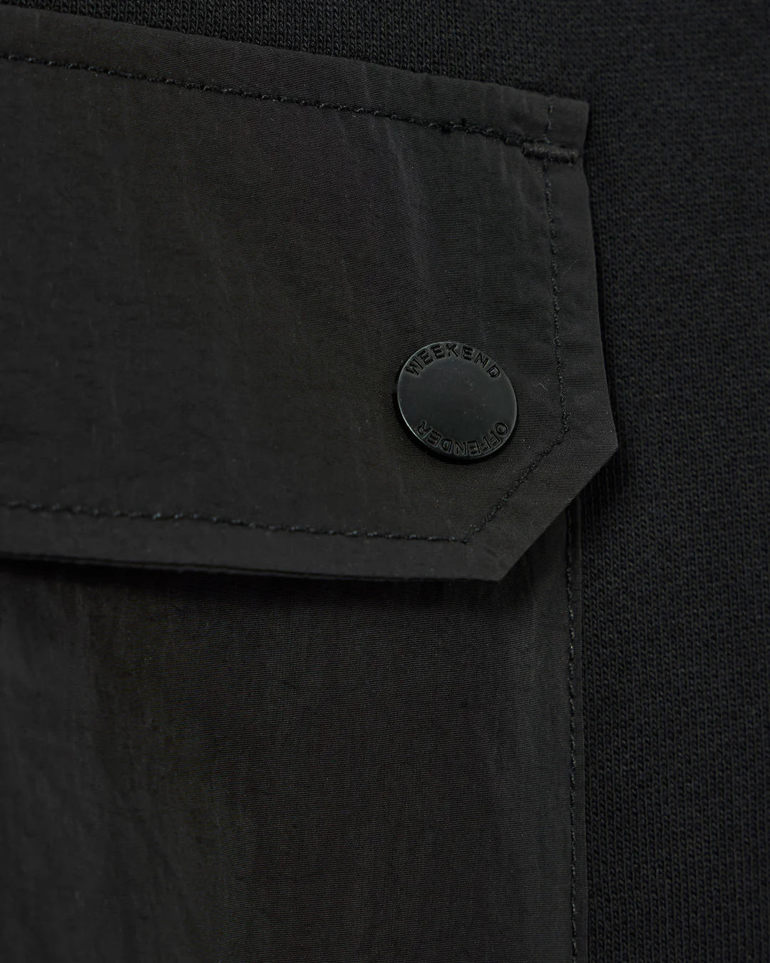 ▪ Ampia tasca applicata in 100% nylon con paracadute sul petto con patta e bottoni automatici con marchio WO