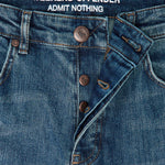 Denim di alta qualità filato, tinto e tessuto nel famoso stabilimento ISKO. Realizzato con cura con filo resistente e rinforzato con elementi metallici WO.