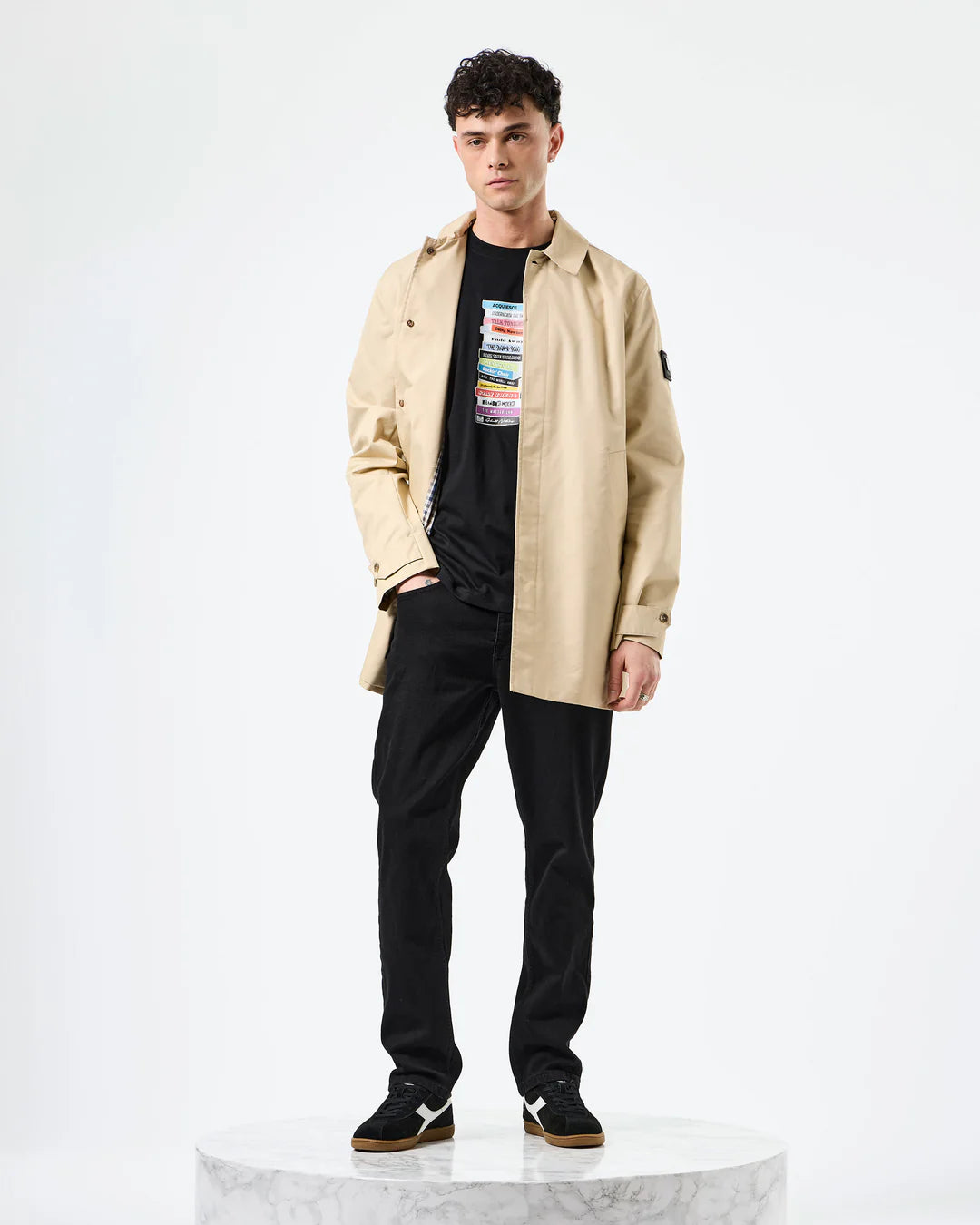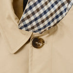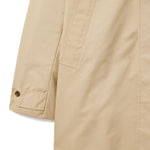 Mac di media lunghezza realizzato in twill a trama fitta con una sottile trama diagonale e una leggera lucentezza in superficie. Questo tessuto misto cotone di peso medio offre versatilità e durata che si prestano perfettamente alla finitura strutturata dei cappotti. Trattato con un rivestimento idrorepellente durevole (DWR).