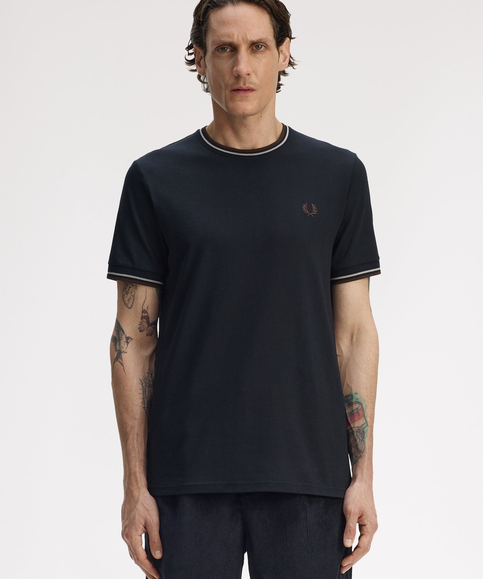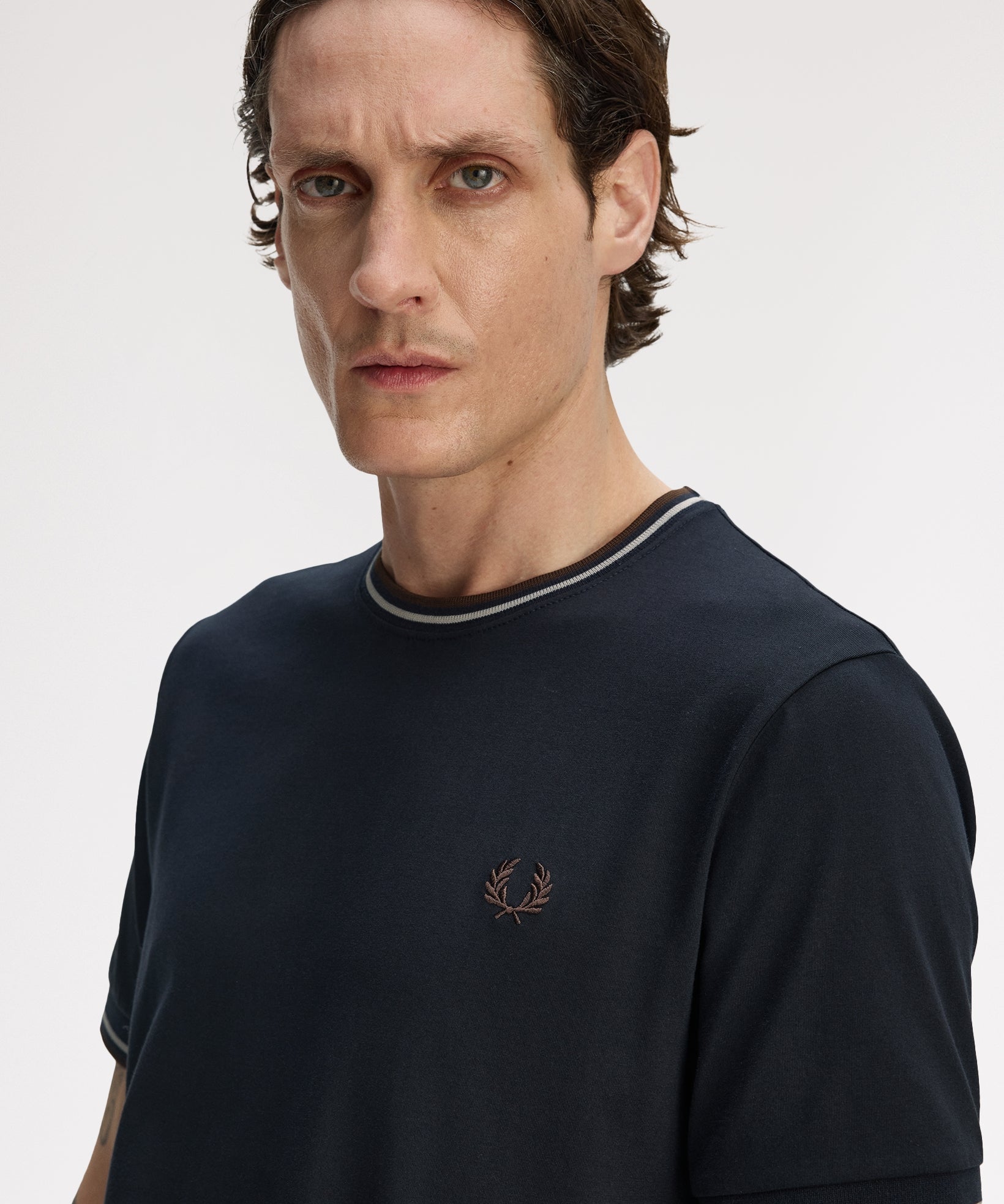 Fred Perry Twin Tipped T-Shirt - Navy/Oatmeal/Burnt Tobacco