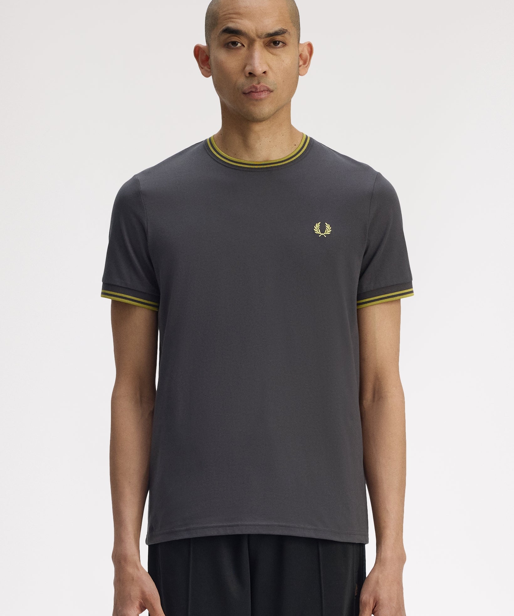 Fred Perry Twin Tipped T-Shirt - Anchor Grey/Tennis Yellow