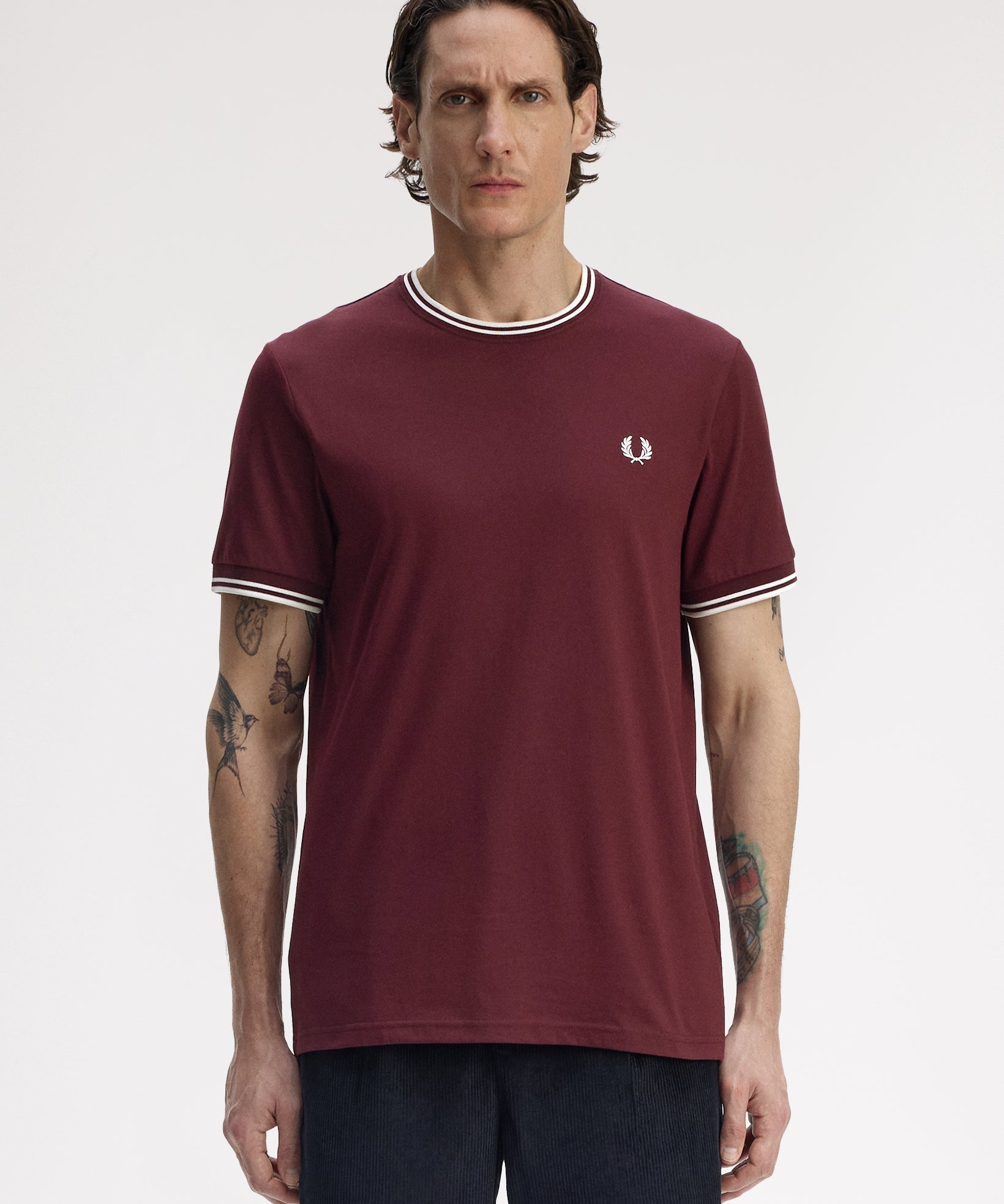 Fred Perry Twin Tipped T-Shirt - Oxblood/White