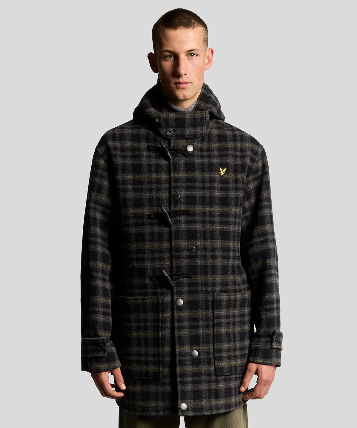 Lyle & Scott Modular Tartan Duffle Coat - Jet Black
