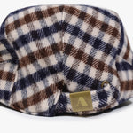 Coppola in tessuto 100% Merino, smacchinata in Club Check, trattata con una leggera resinatura a spray per creare la caratteristica di articolo repellente all'acqua. Etichetta tessuto posizionata sul lato interno.