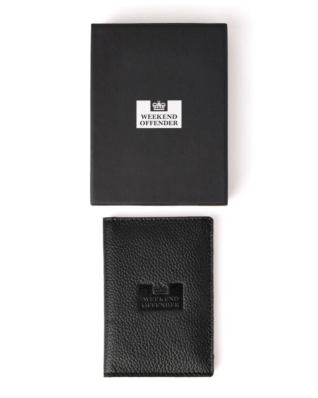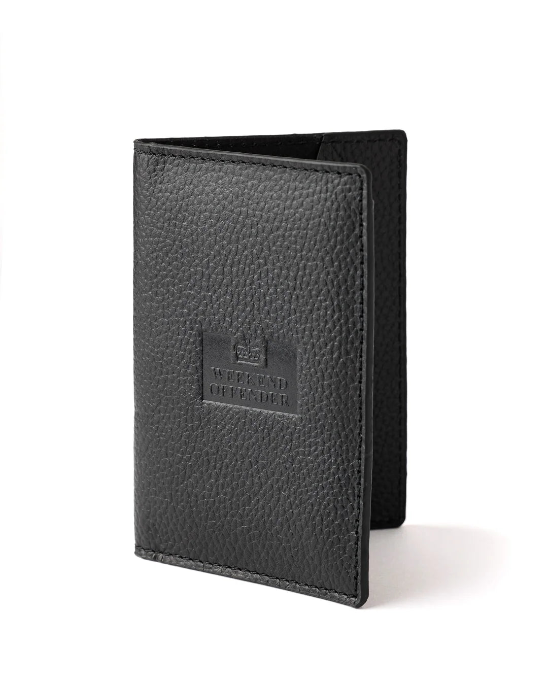 Realizzato in pelle al 100%, questo porta passaporto di qualità premium di Weekend Offender presenta il logo Weekend Offender Prison impresso sul lato anteriore.