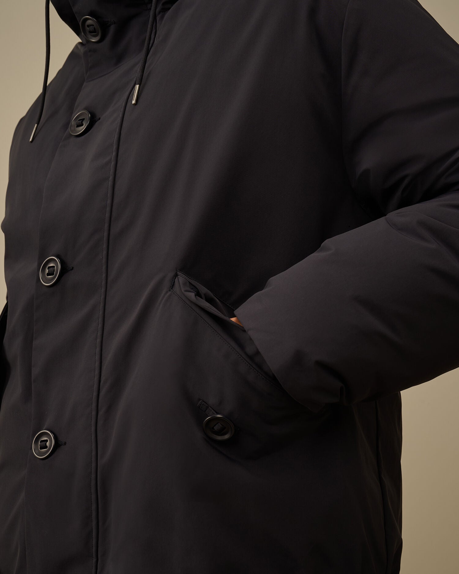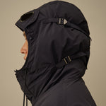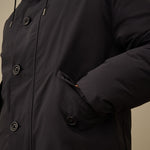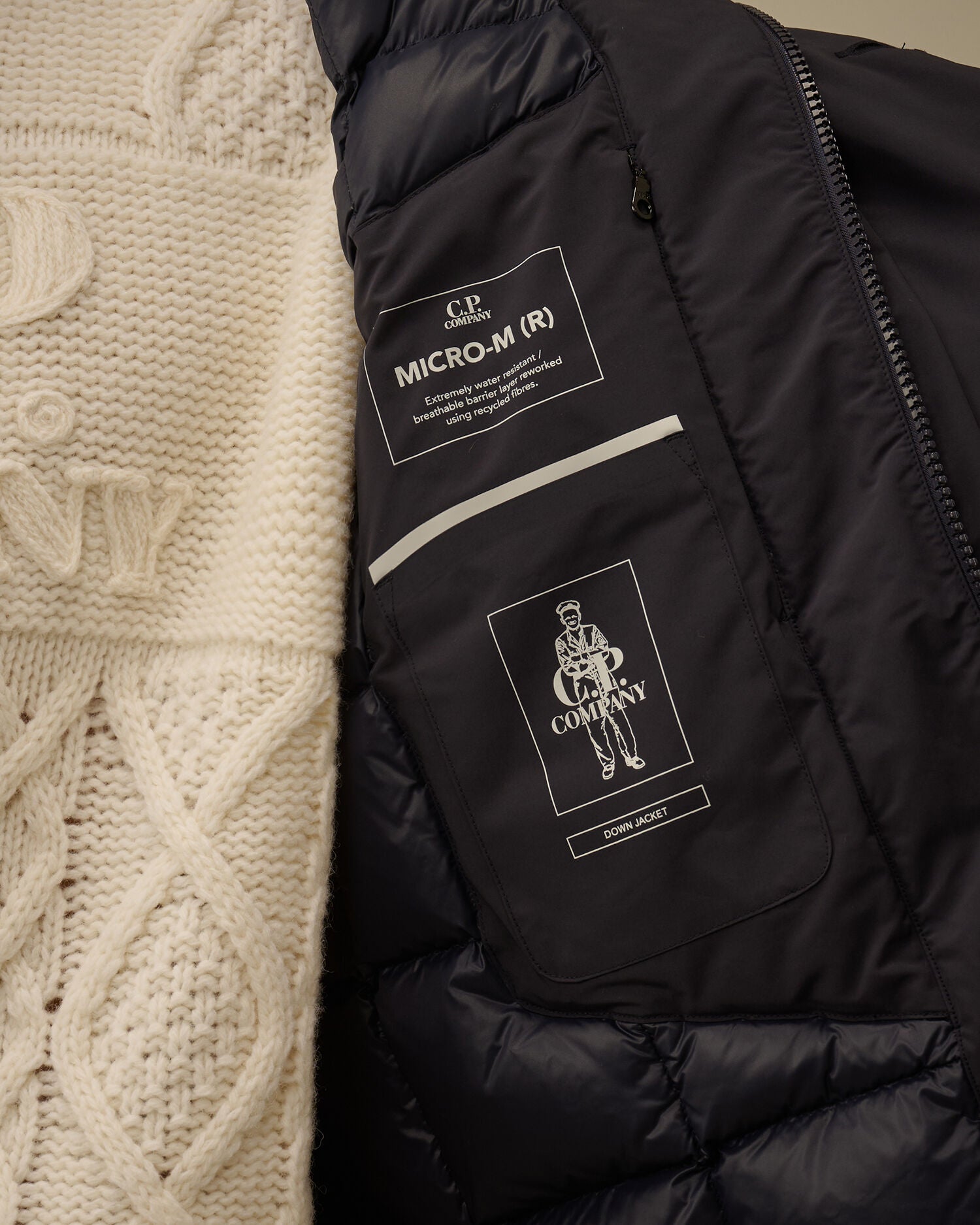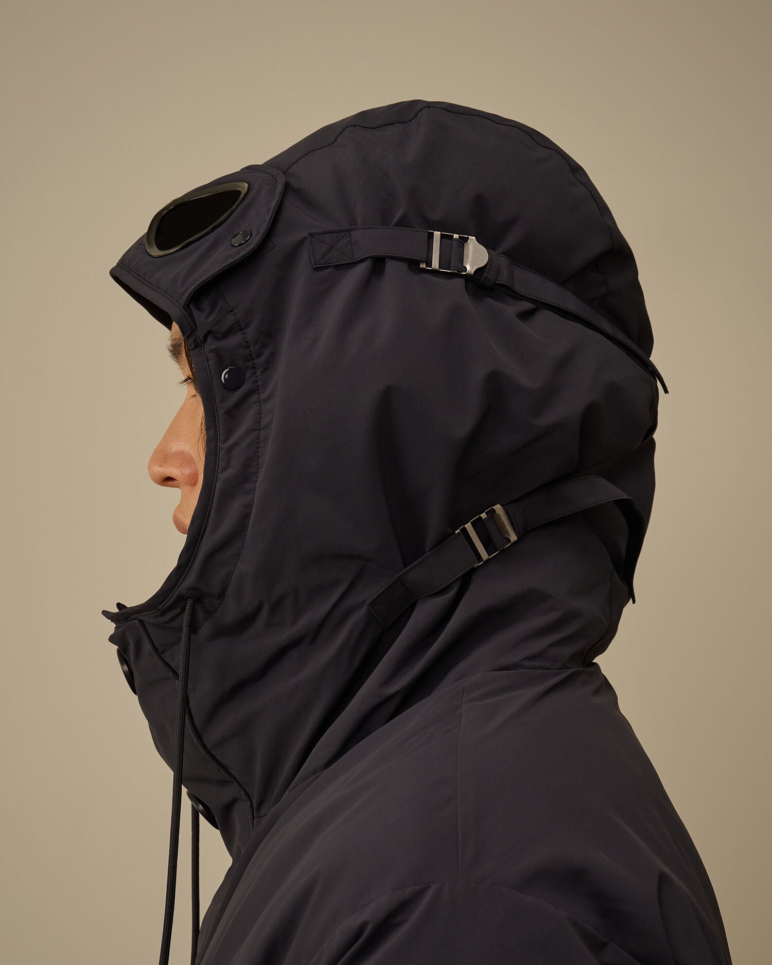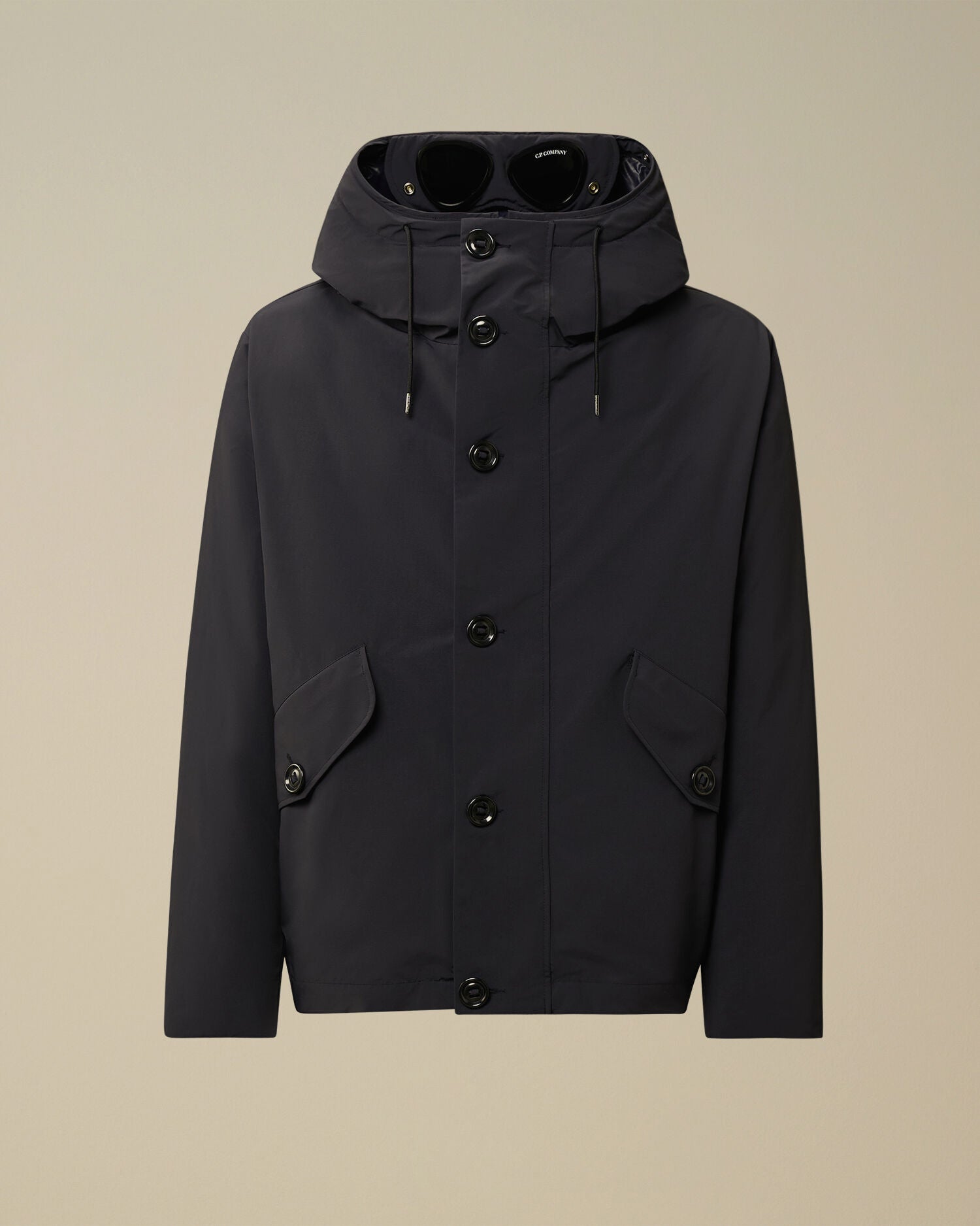 Goggle Jacket realizzata in Micro-M (R), un'evoluzione dello strato esterno del 50 Fili. Il filo di cotone viene sostituito con una microfibra di poliestere idrorepellente, mentre quello di nylon è sostituito da un filato di poliestere riciclato. La giacca presenta C.P. L'iconico cappuccio Goggle dell'azienda con cinghie posteriori, chiusura nascosta con zip a due vie con chiusura a scatto con patta e tasche frontali con bottoni. Completo di tasca interna con zip, polsini elastici interni, orlo regolabile con coulisse, con inserti elastici laterali sul retro. Resistente all'acqua e traspirante. Vestibilità regolare.