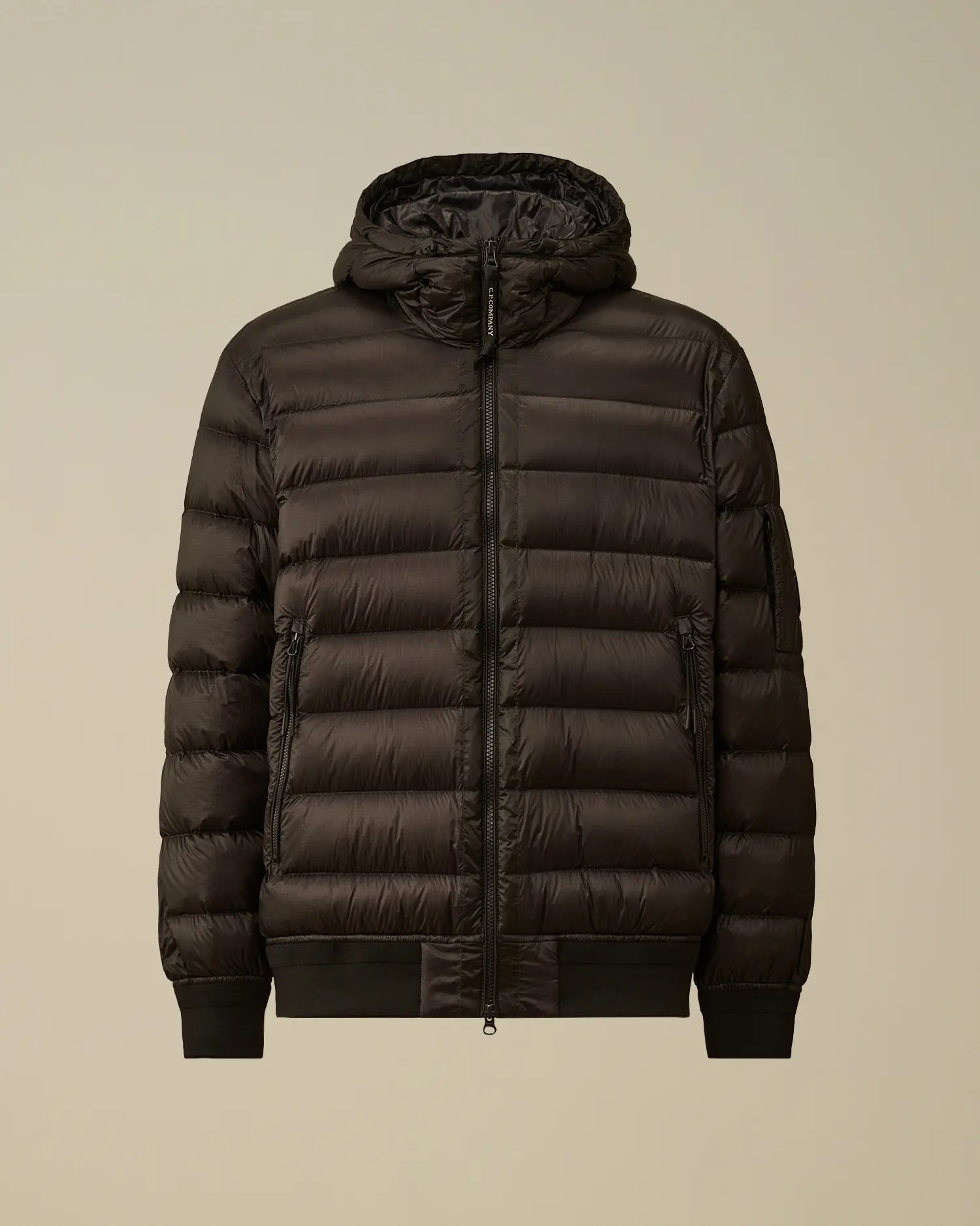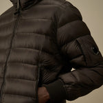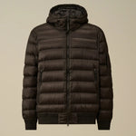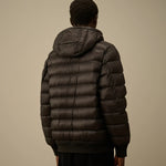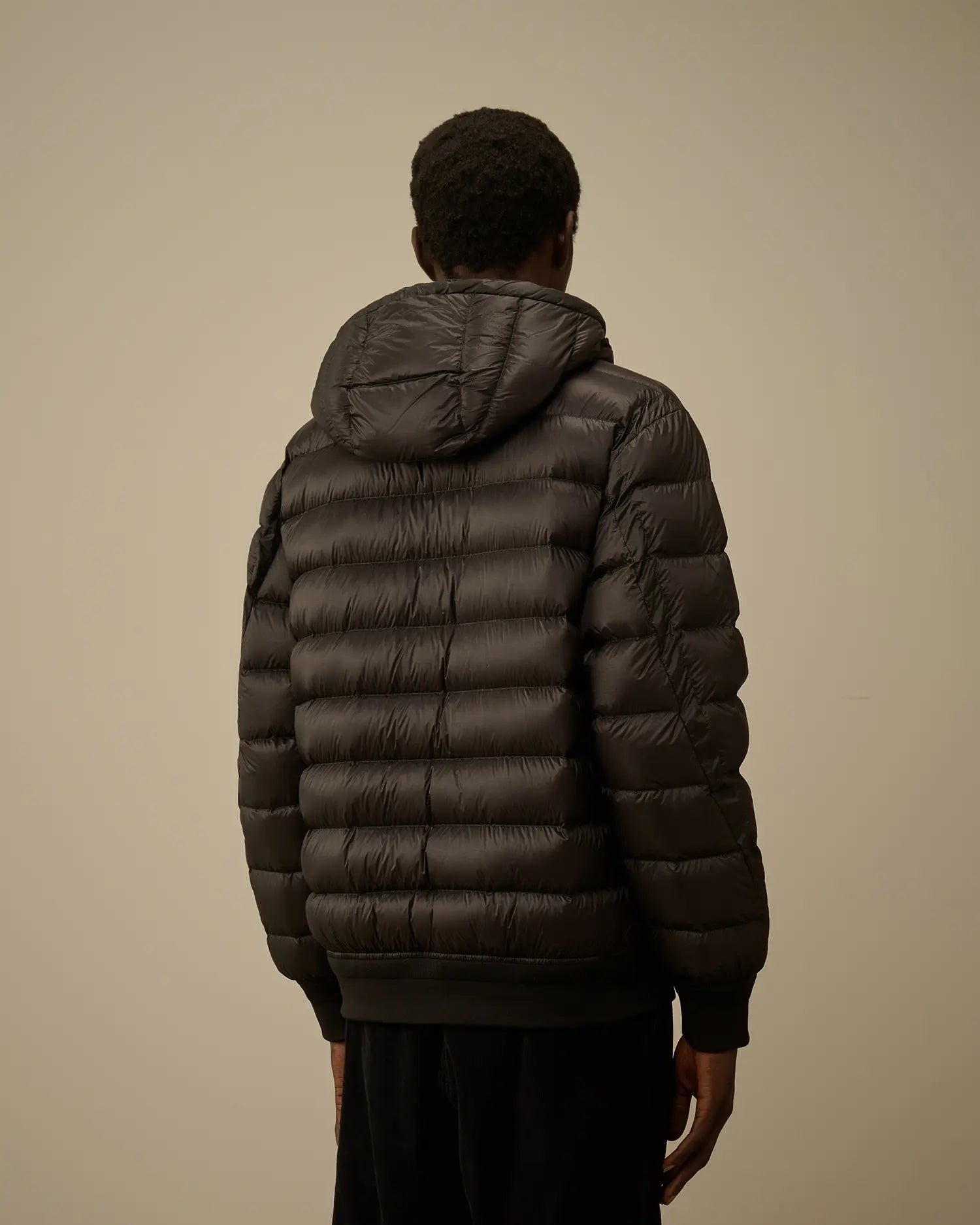 Piumino con cappuccio realizzato in D.D. Shell, un nylon a 7 denari opaco micro-ripstop. La leggerezza e la trasparenza del tessuto enfatizzano la struttura del capo, mentre il processo di iniezione diretta garantisce un isolamento ottimale. La giacca presenta un cappuccio regolabile, una chiusura a doppia via con zip e tasche laterali con zip. Finito con C.P. Lenti iconiche dell'azienda, polsini a coste e orlo. Vestibilità regolare