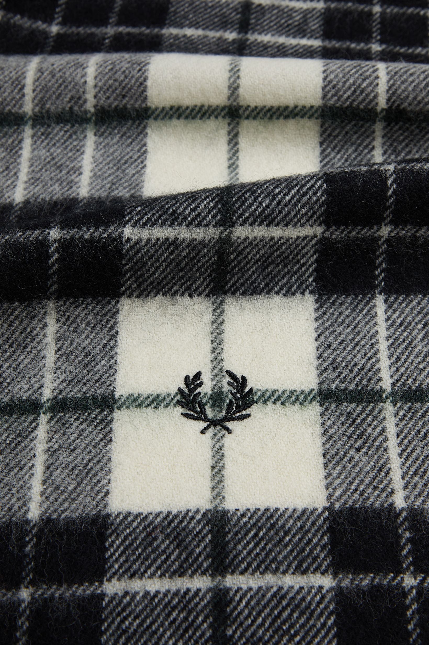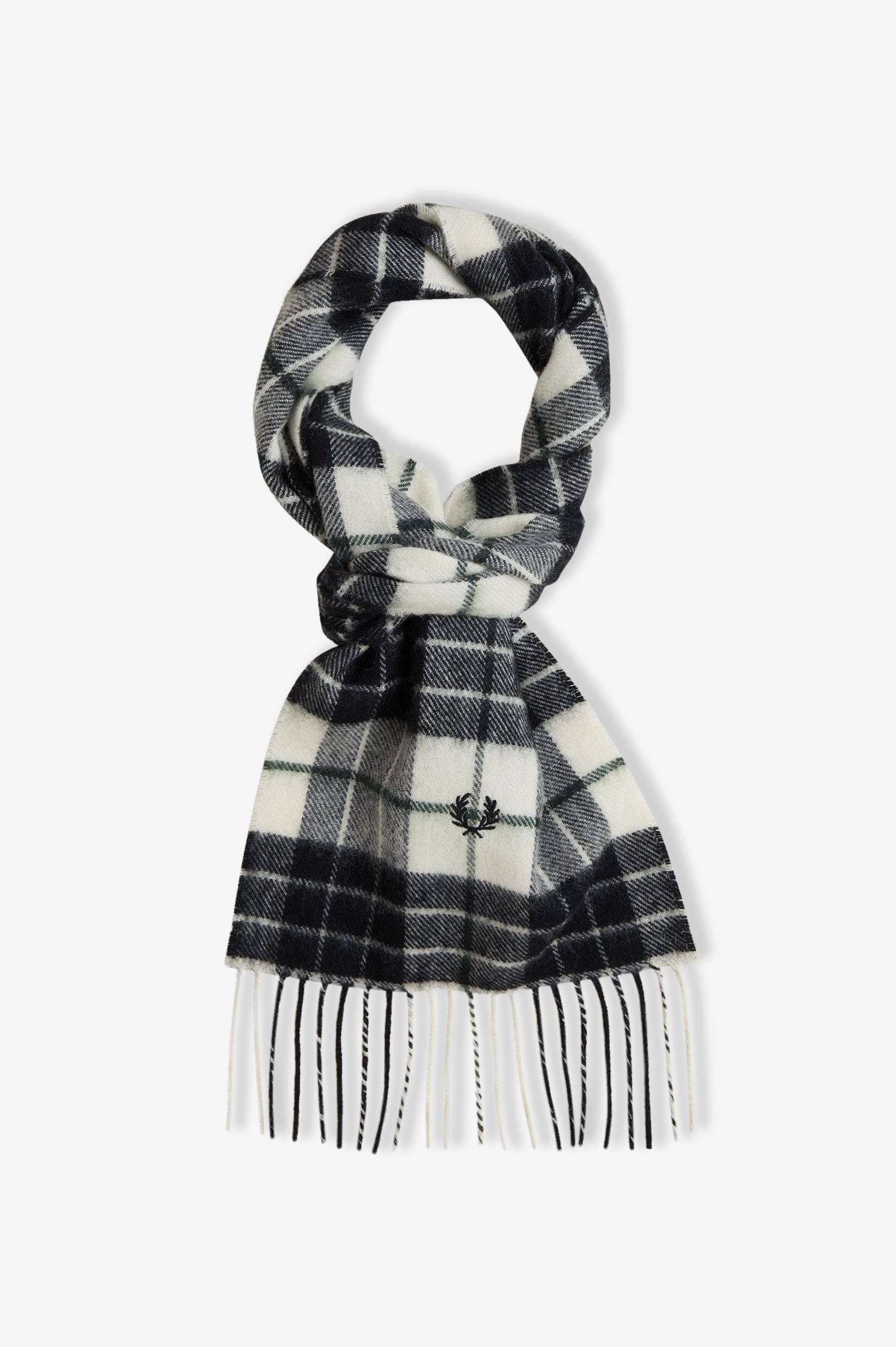 Realizzata in Scozia in pura lana d'agnello, la sciarpa in tartan Fred Perry è impreziosita dal caratteristico ricamo con corona d'alloro.