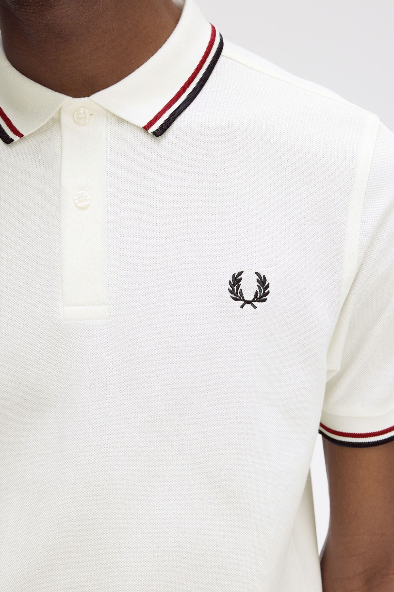 Fred Perry Twin Tipped Polo Shirt - Snow White/Burnt Red/Navy