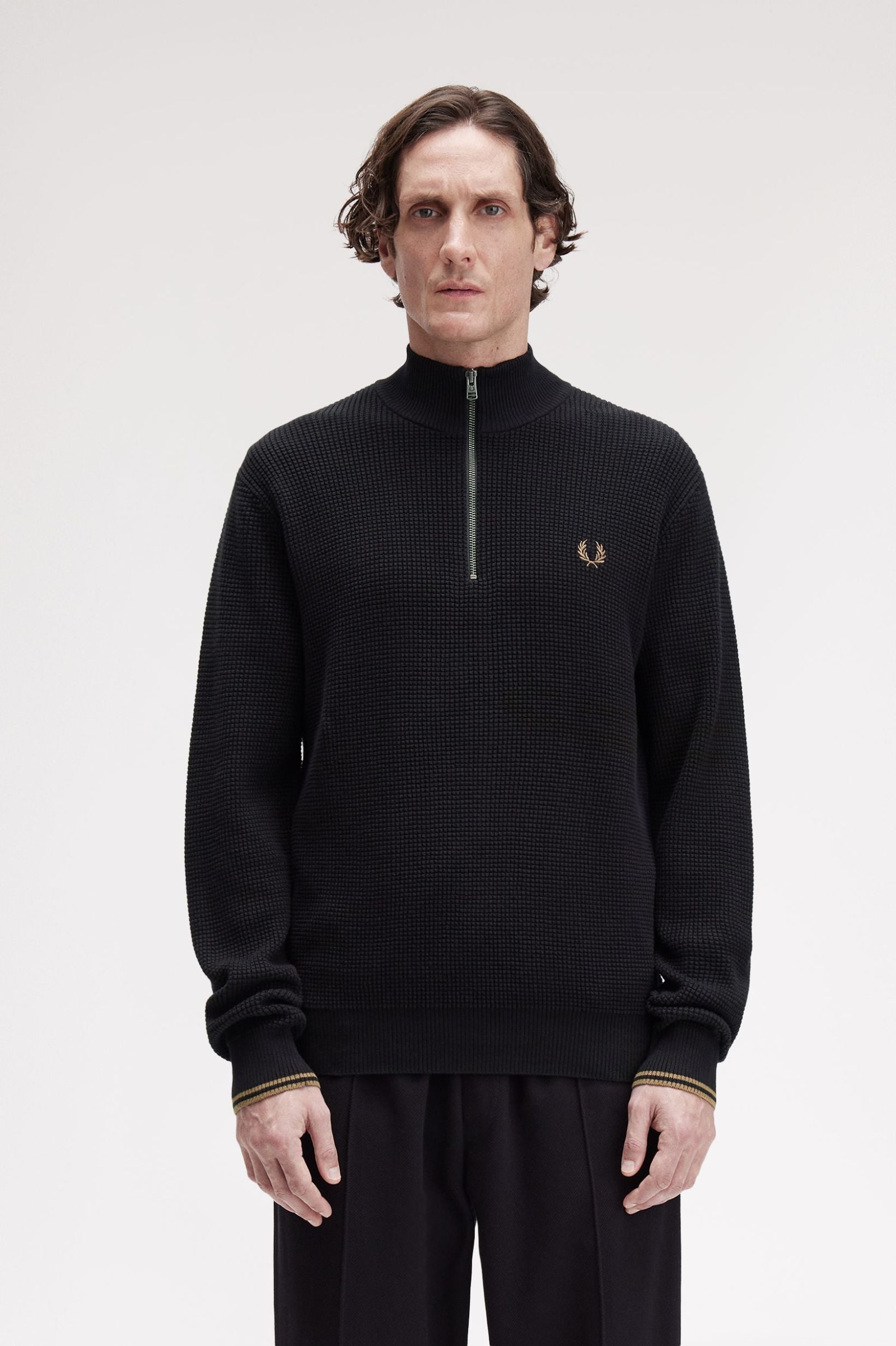 Fred Perry Waffle Stitch Half Zip Jumper - Black