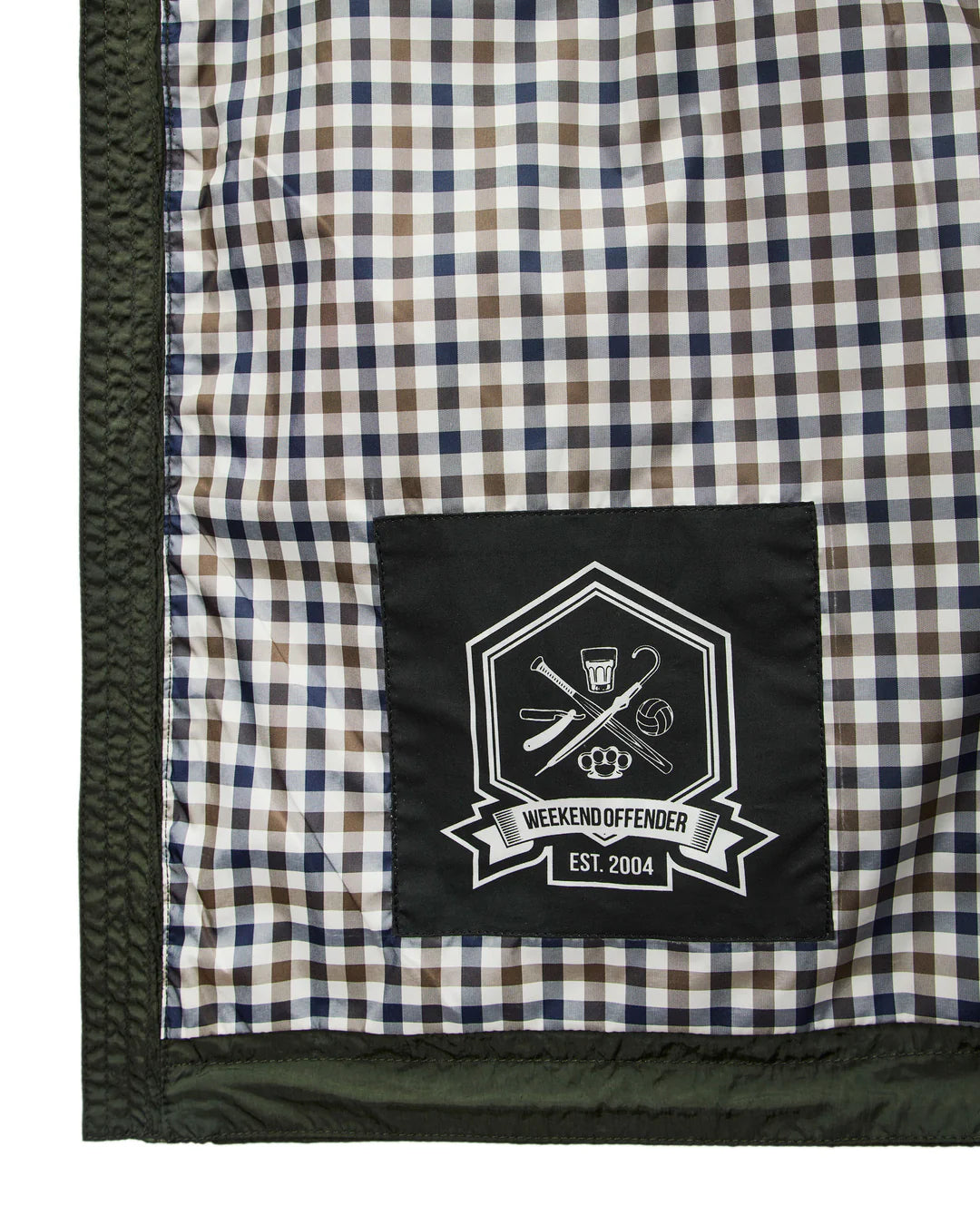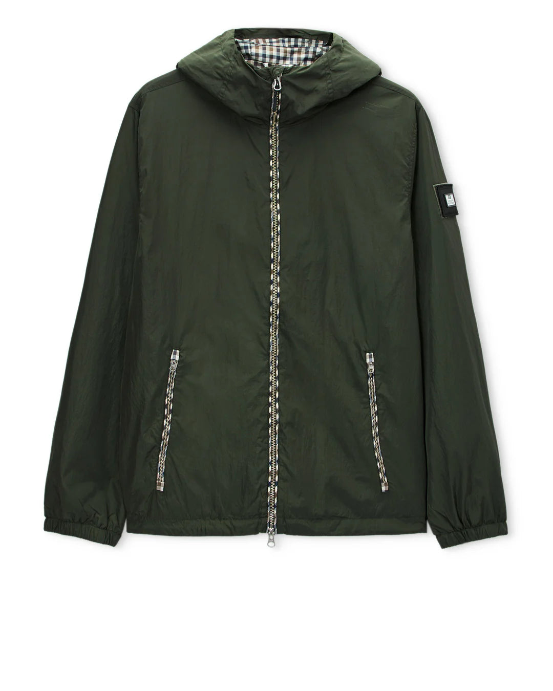 La giacca Campania è realizzata in tessuto leggero ad alta densità in nylon al 100%, stile paracadute, con superficie leggermente riflettente.