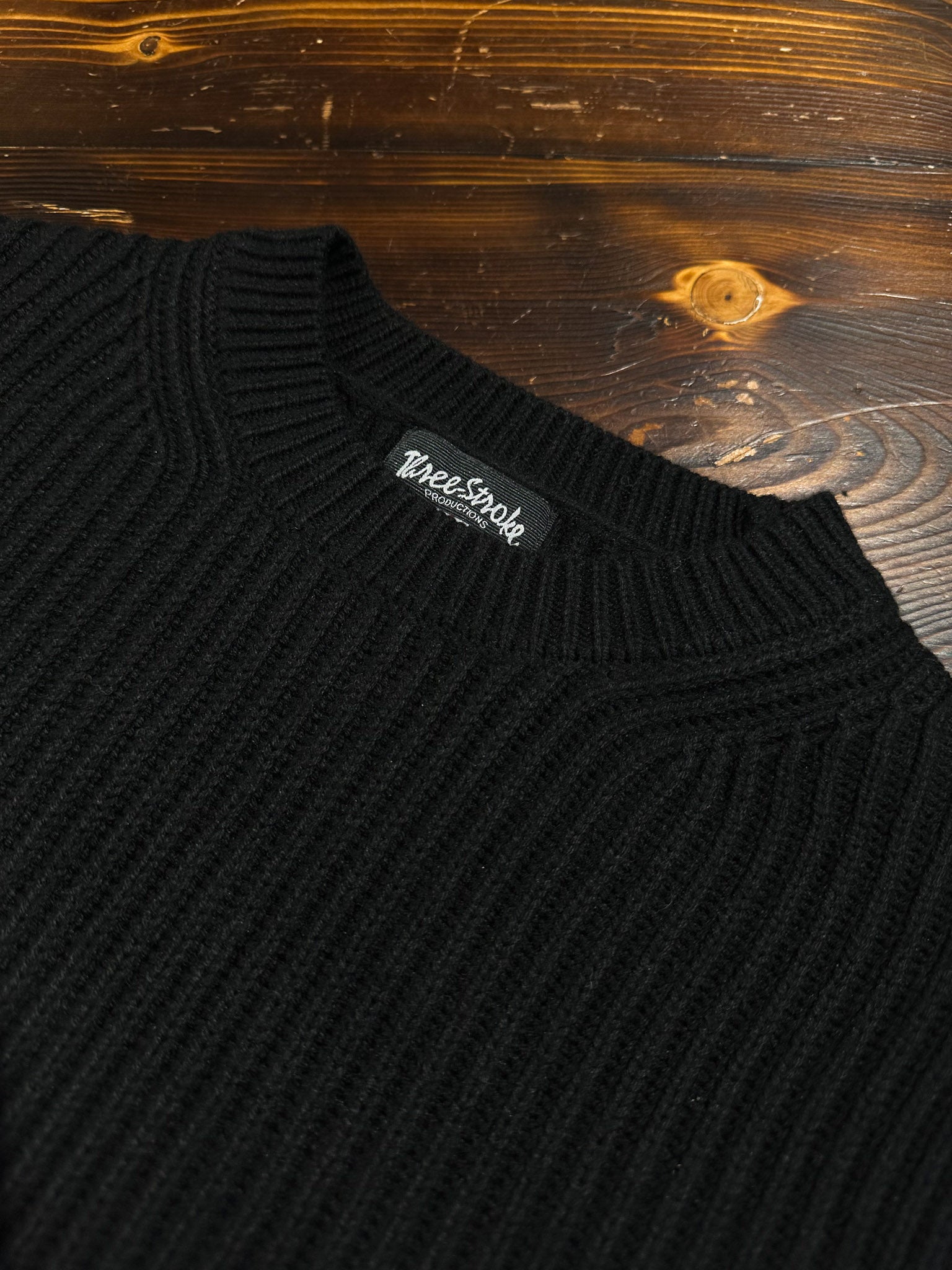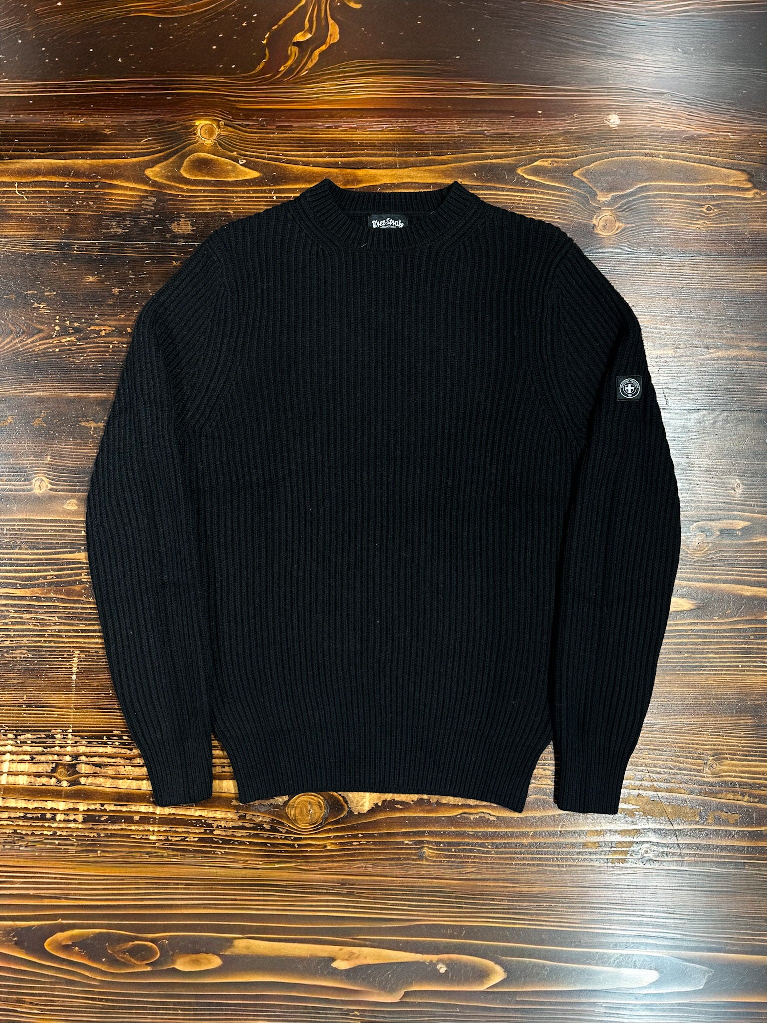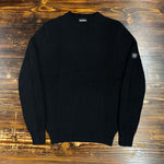 Maglione girocollo realizzato in una morbida miscela di cotone misto lana e fibra tecnica. Toppa in tessuto TSP97 sulla manica sinistra, orlo e polsini elasticizzati.