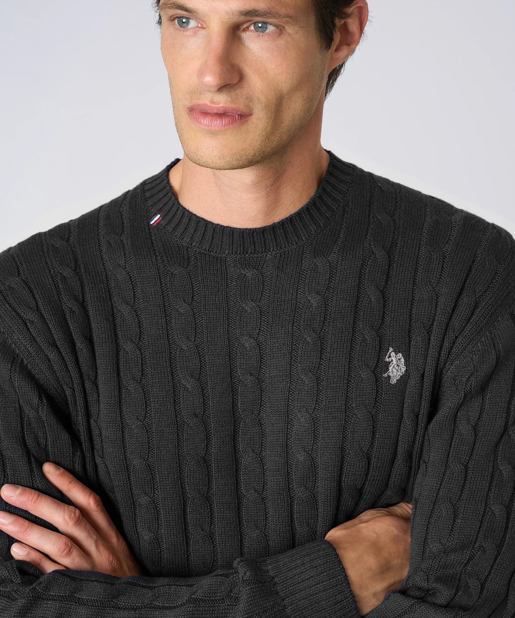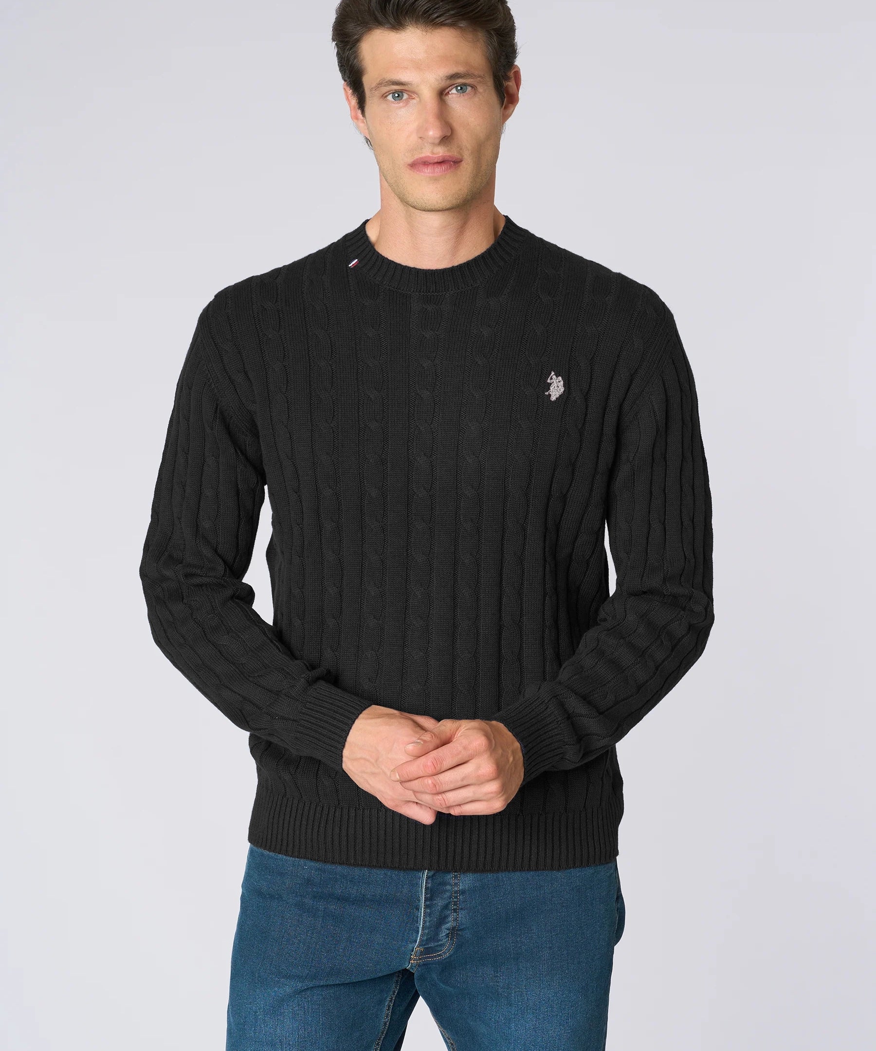 U.S. Polo Assn. Maglia Girocollo a Treccia in Cotone e Cashmere - Black
