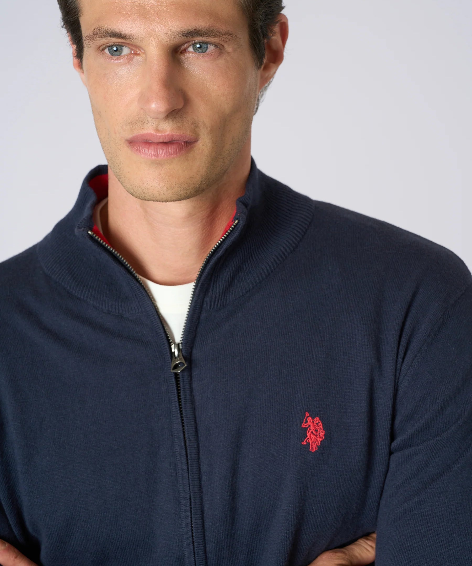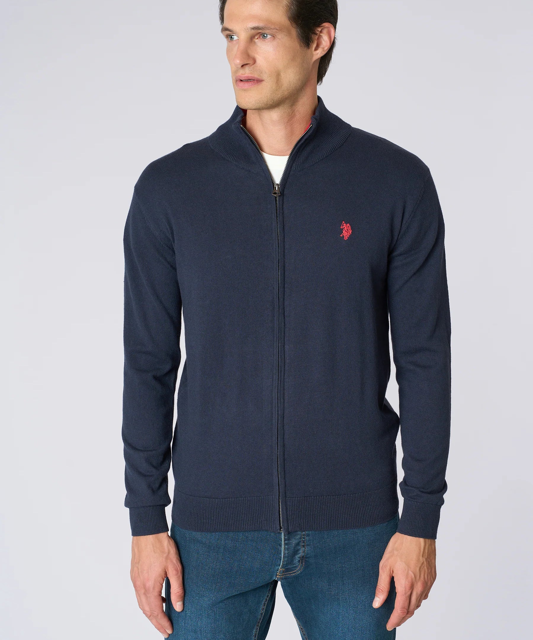 U.S. Polo Assn. Cardigan Full Zip Cotone e Cashmere - Dark Navy
