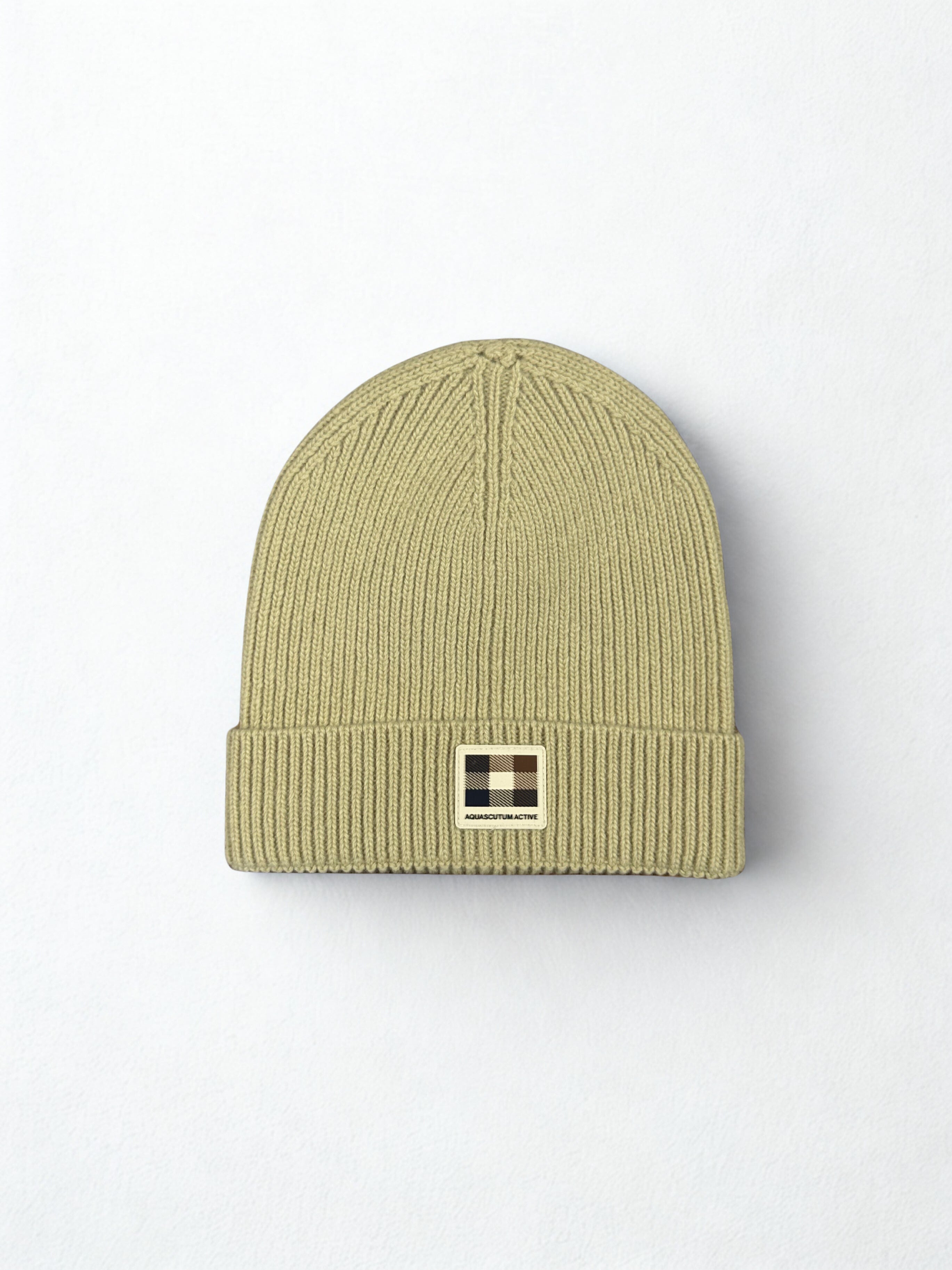 Aquascutum Active Wool Rubber Patch Beanie - Khaki
