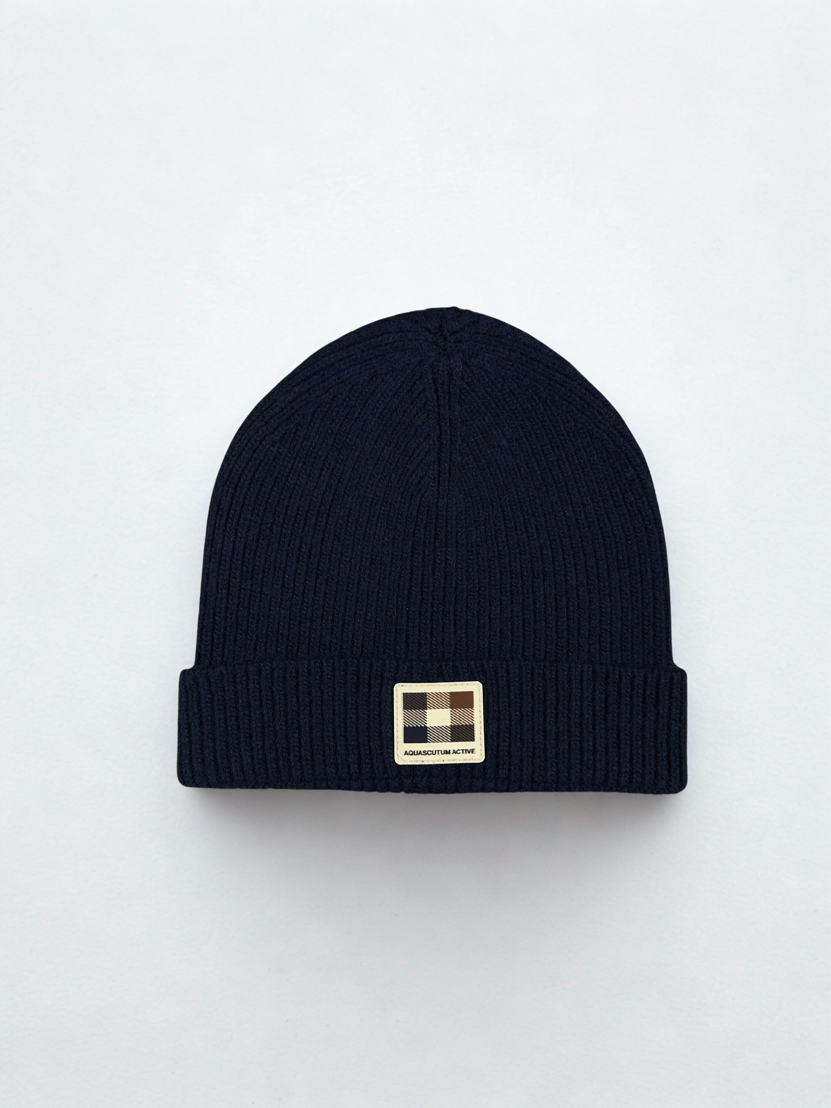 Aquascutum Active Wool Rubber Patch Beanie - Navy