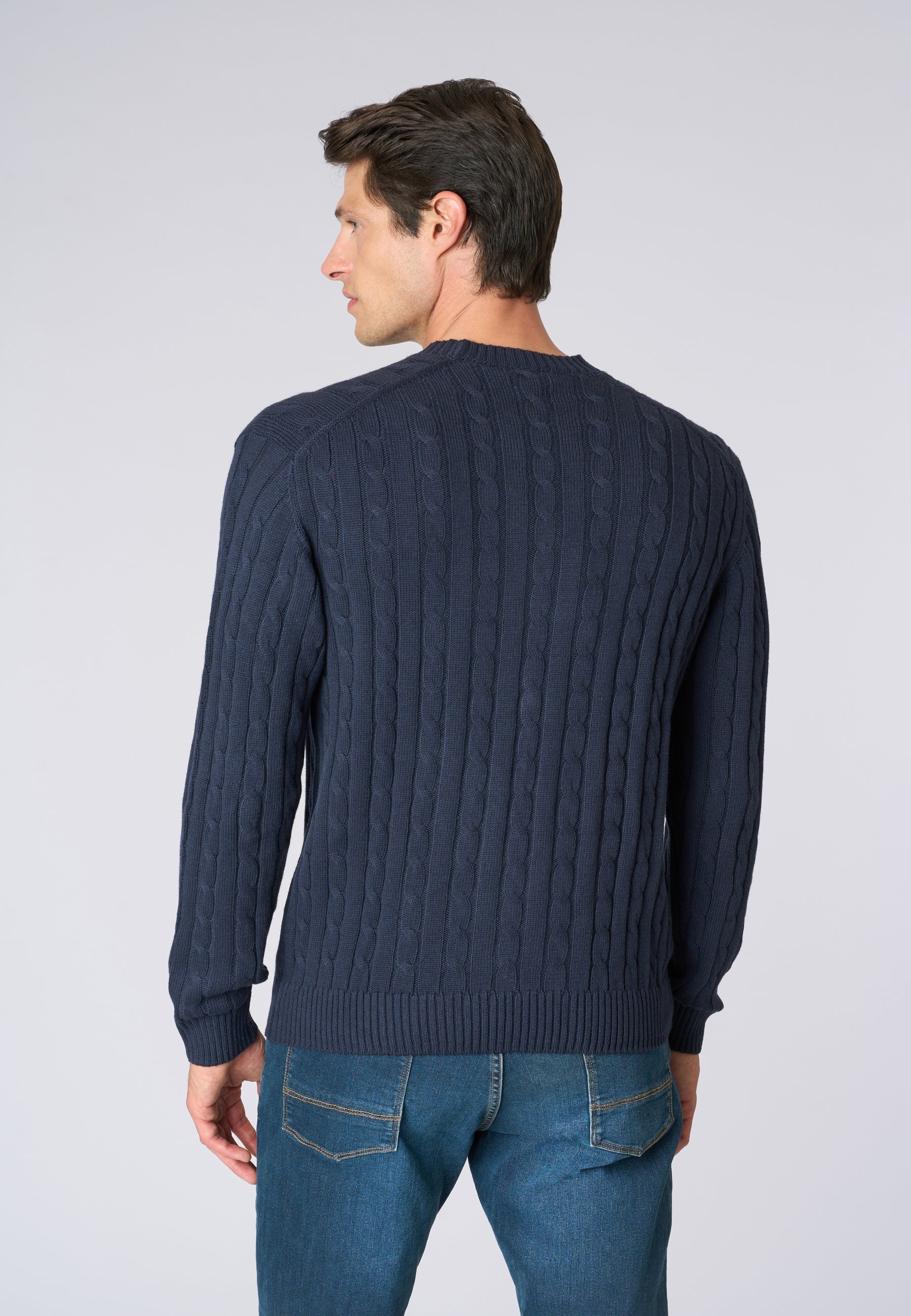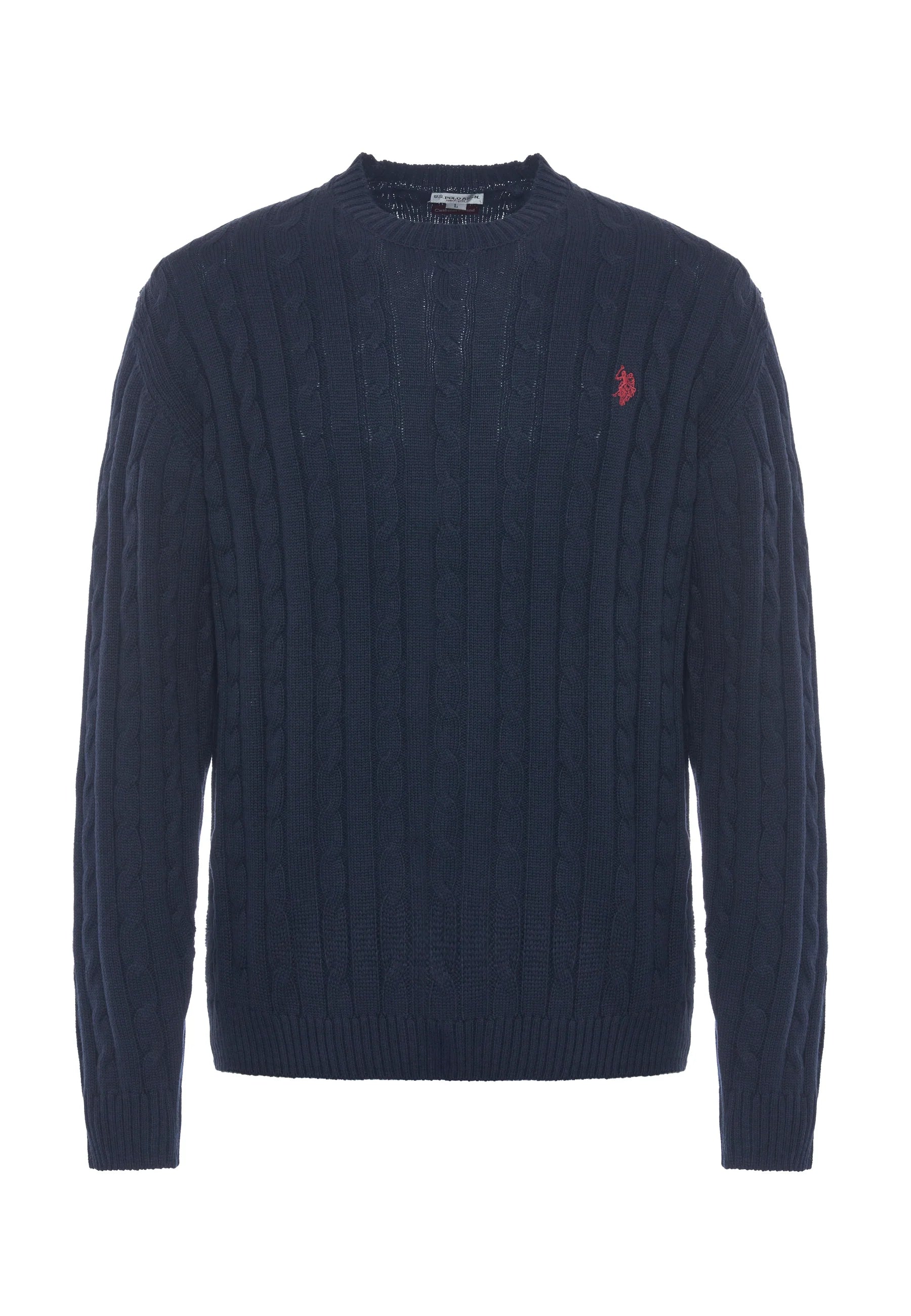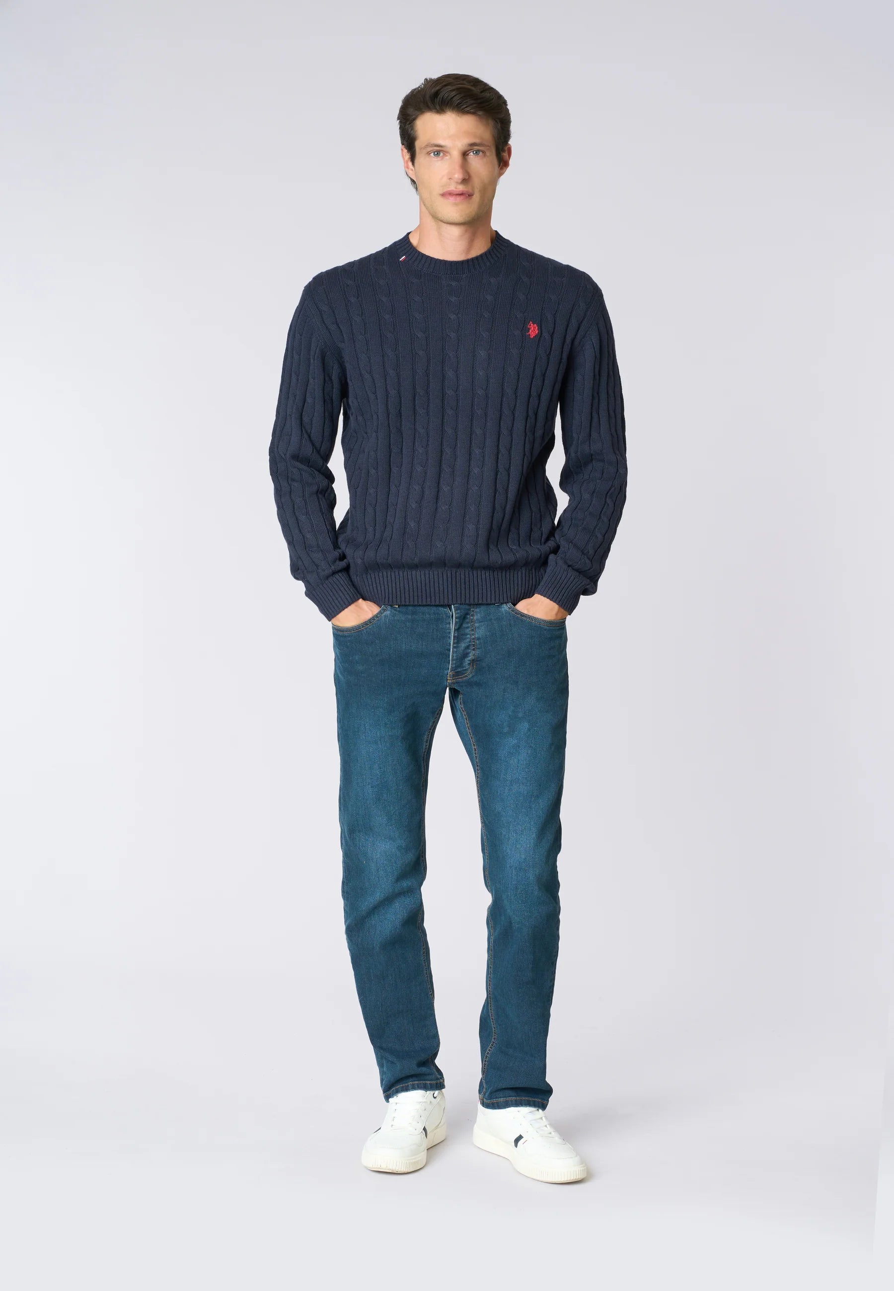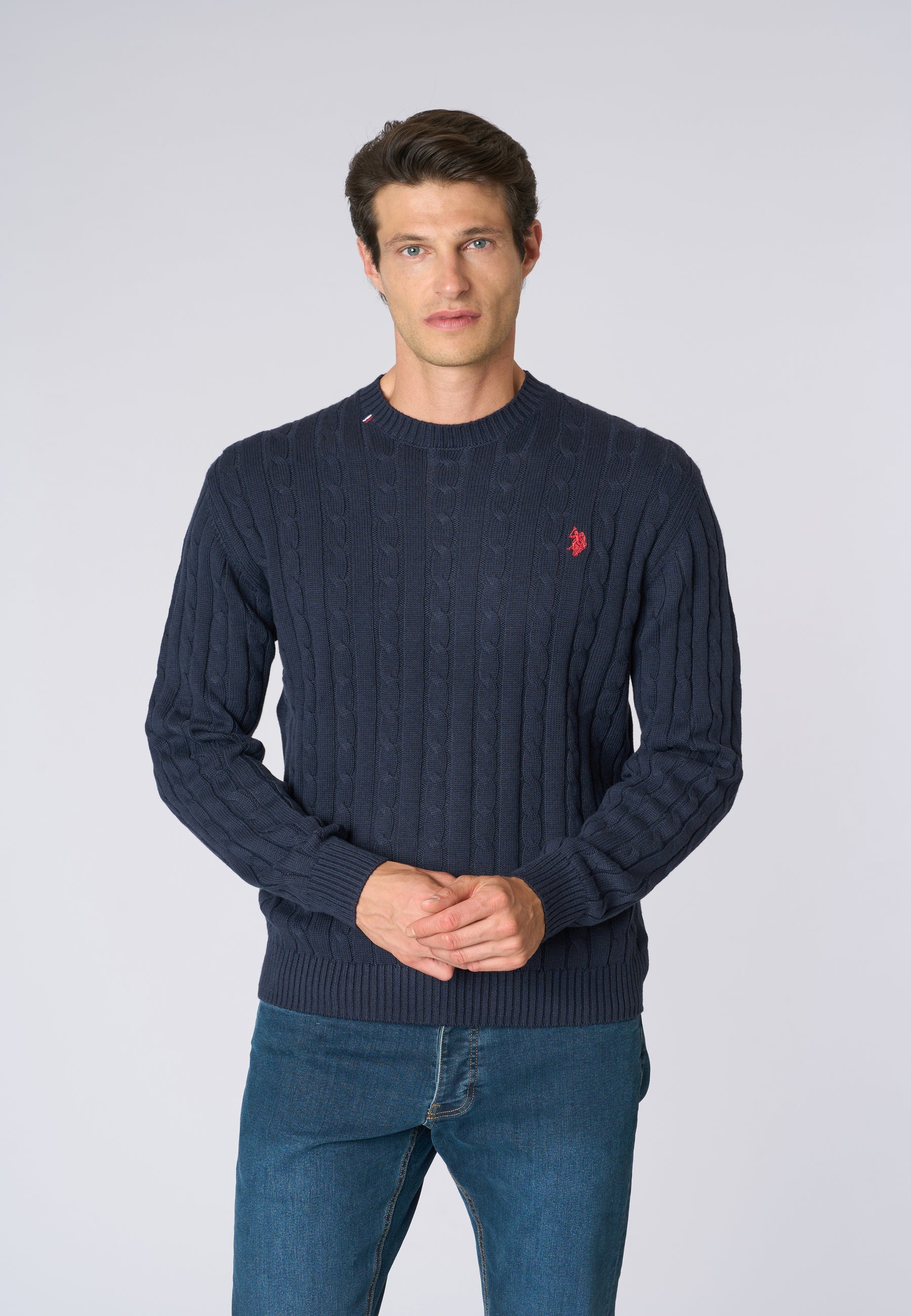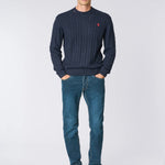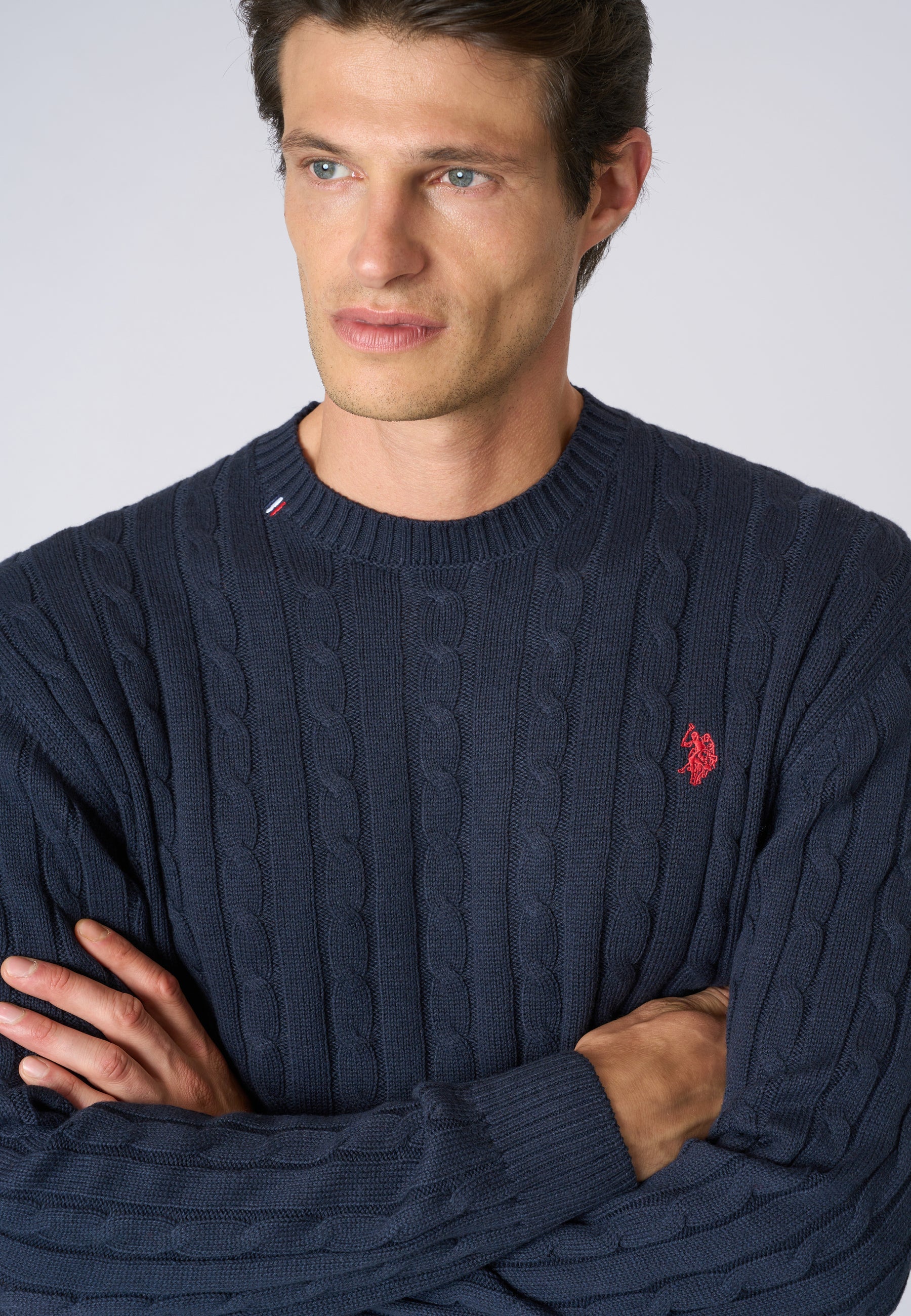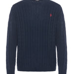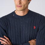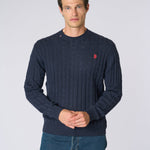 U.S. Polo Assn. Maglia Girocollo a Treccia in Cotone e Cashmere - Dark Navy