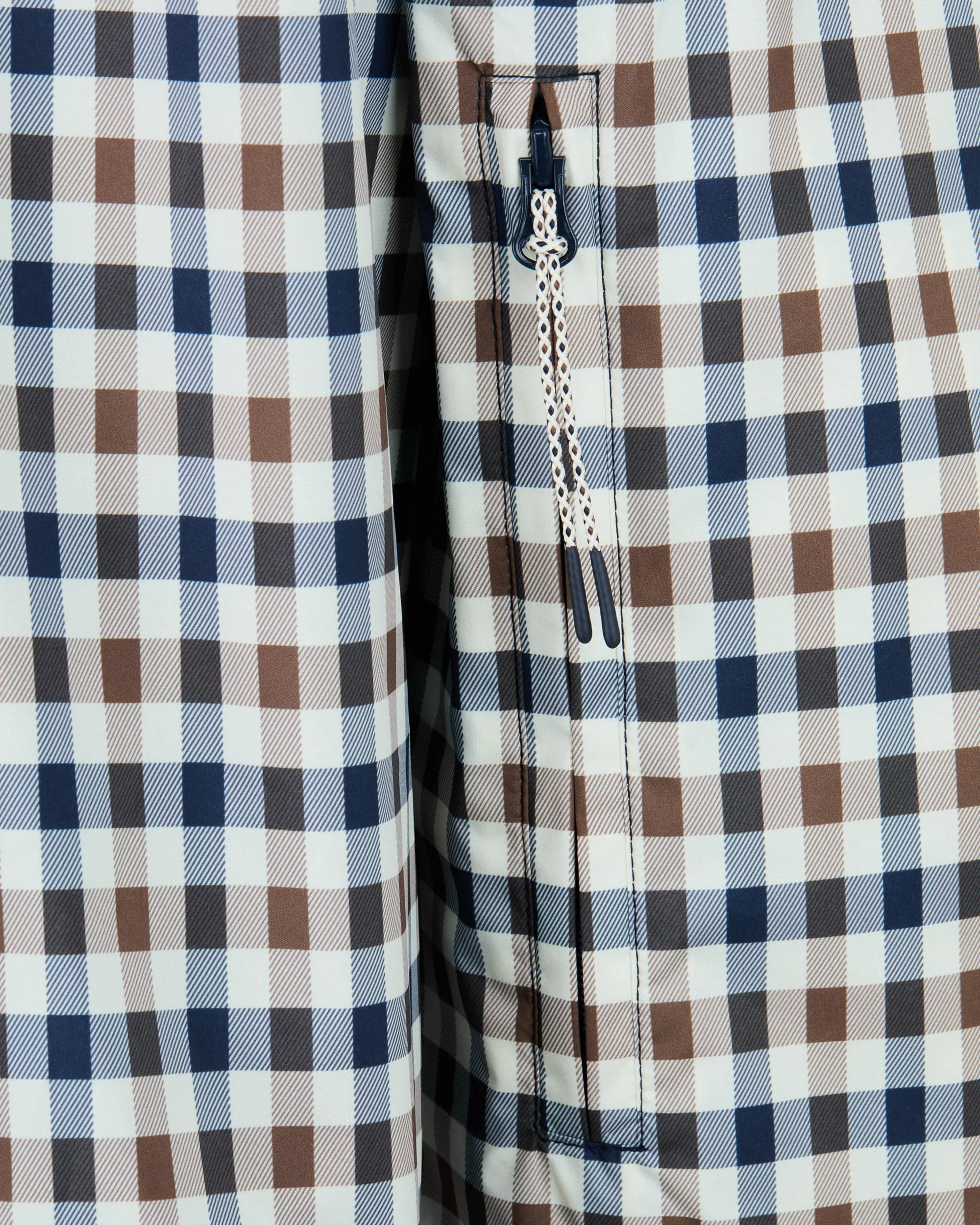 La costruzione reversibile consente di indossare il capo in due versioni differenti: un lato in tinta unita dal carattere pulito e moderno e un lato con stampa integrale Club Check iconica, espressione distintiva dell’heritage Aquascutum. Una soluzione funzionale che permette di adattare lo stile a diverse occasioni.