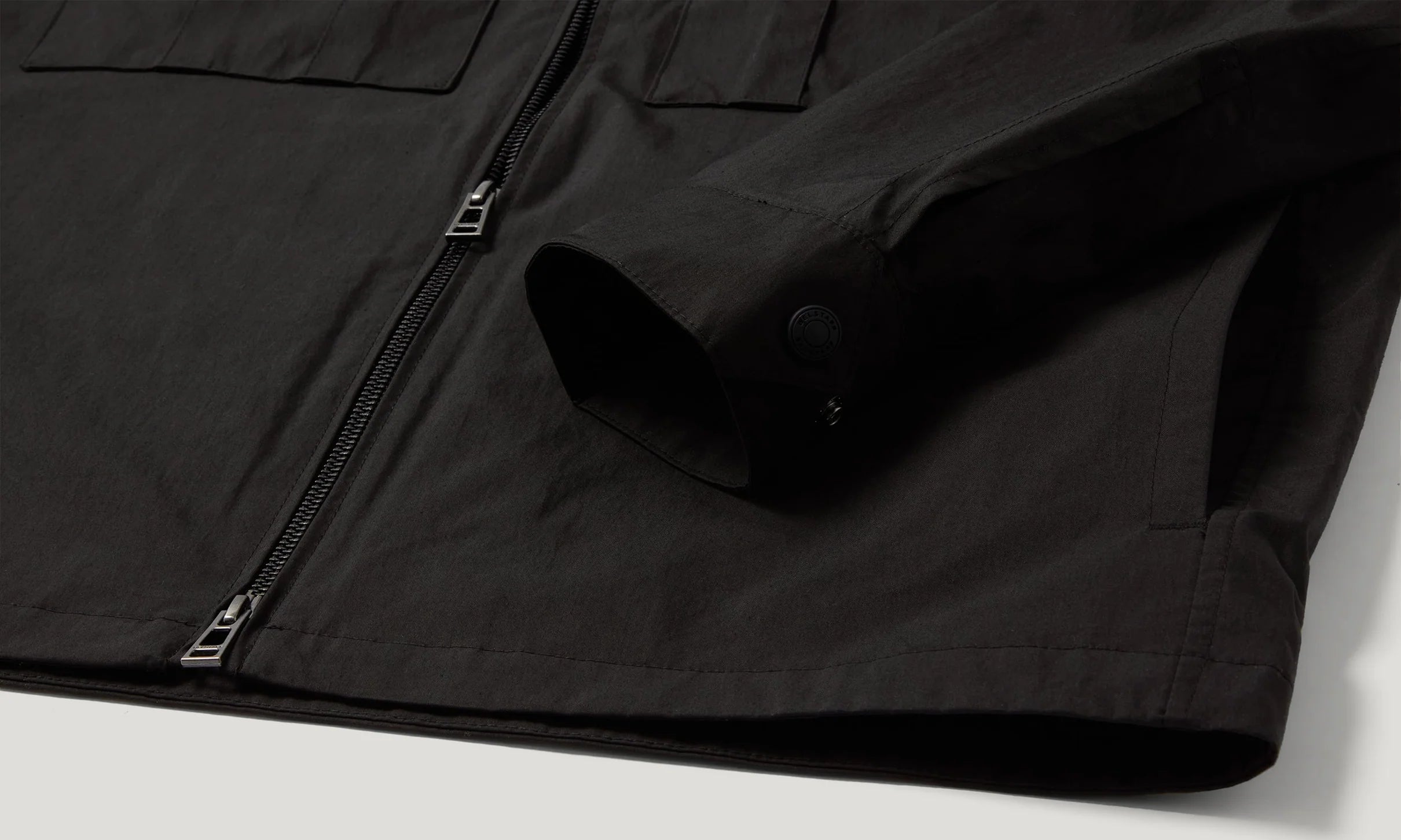 La giacca-camicia Container nera è un capo versatile con tasche funzionali Belstaff e plissettature. È realizzata in cotone tecnico compatto, un tessuto resistente, traspirante a elevate prestazioni e dalla finitura liscia. Questa elegante giacca-camicia da uomo è antipiega e conserva la forma per una vestibilità perfetta. Trattato con rivestimento idrorepellente, ideale in caso di piogge leggere.