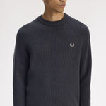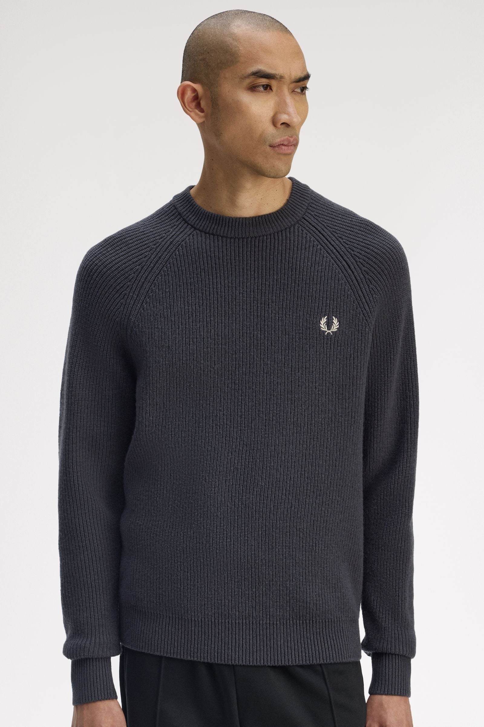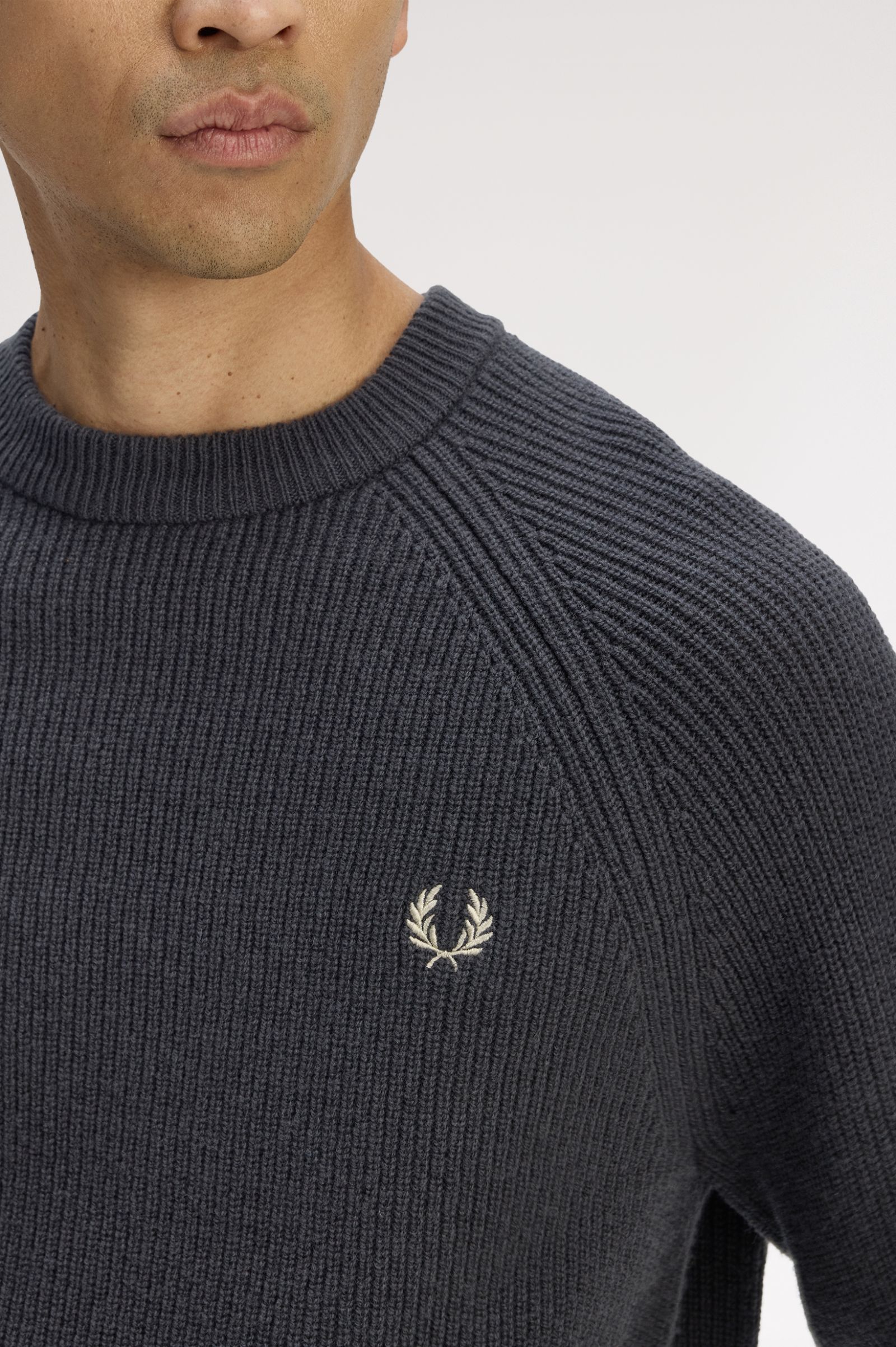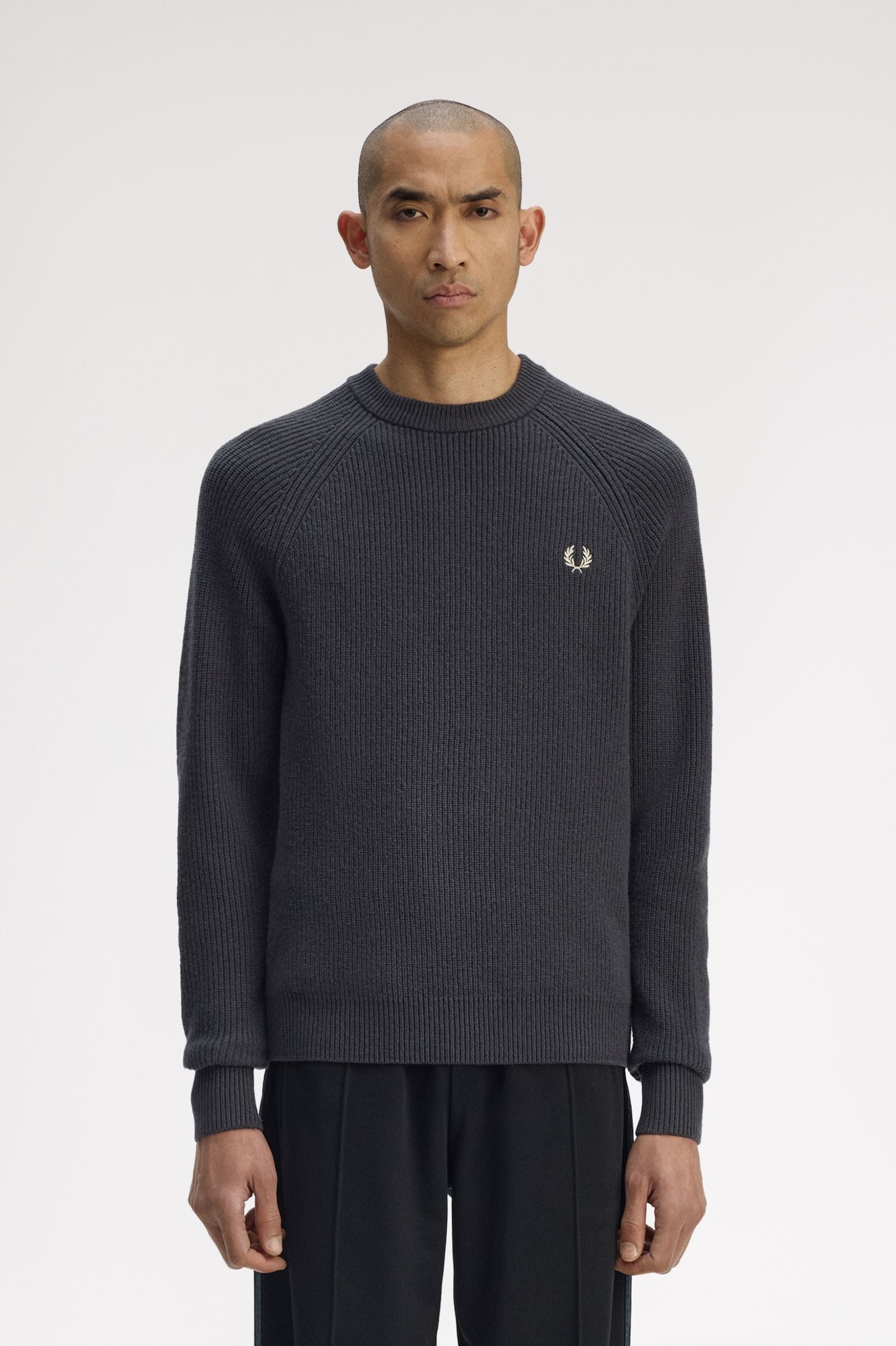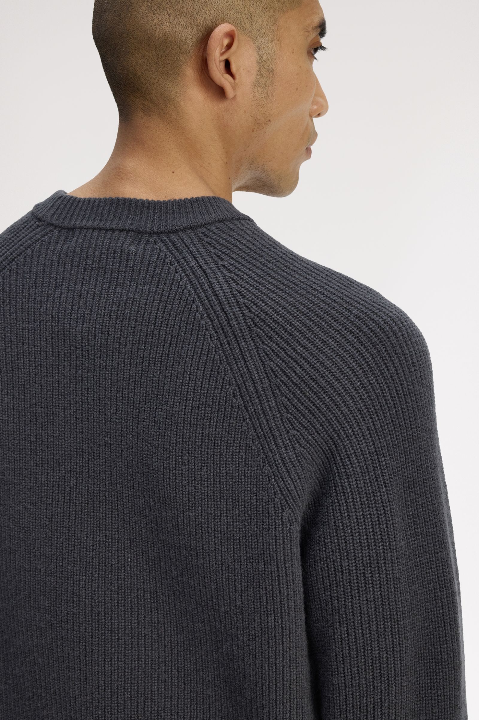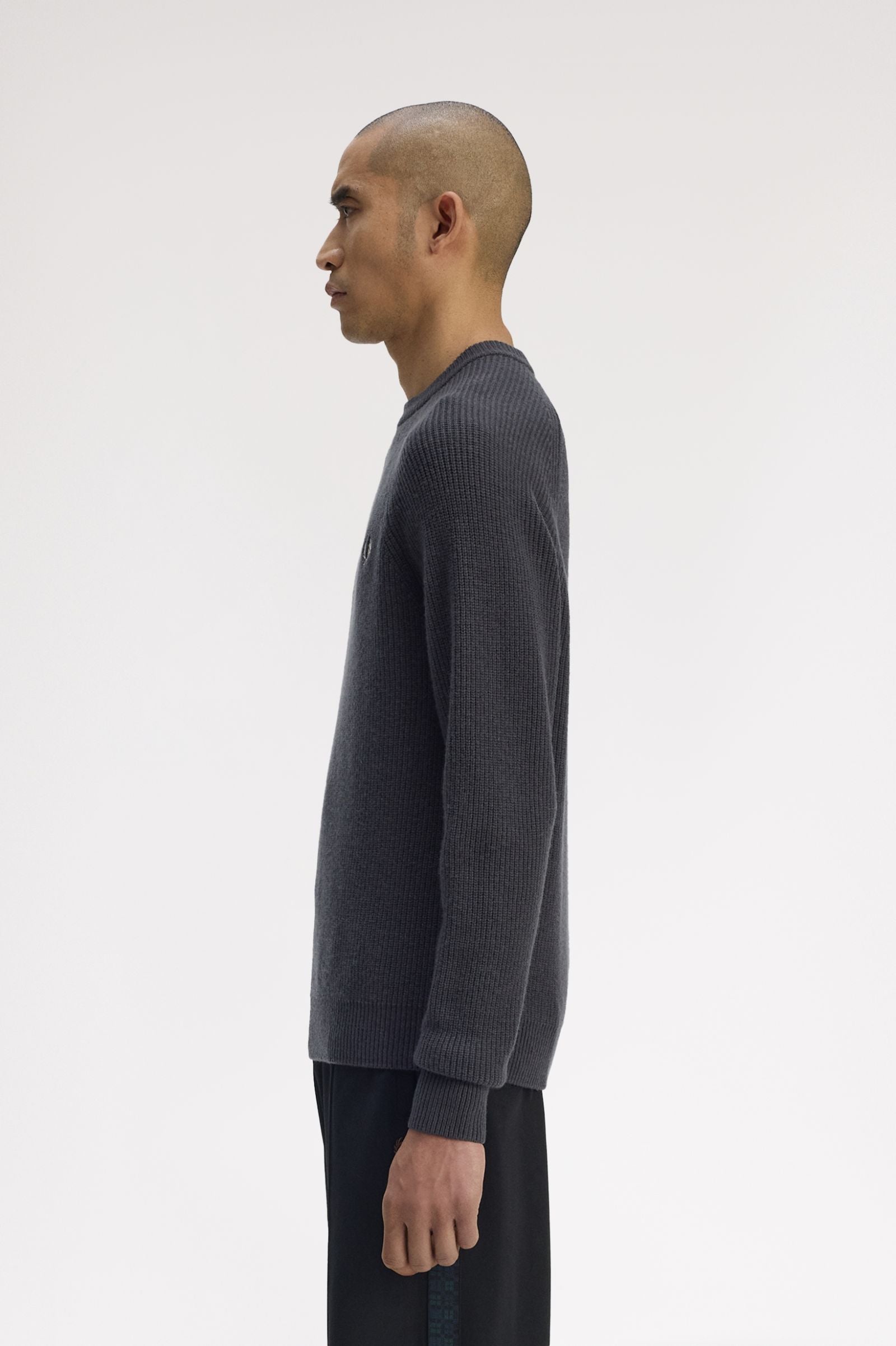 Un maglione in lana d'agnello con una maglia textured su tutto il capo.