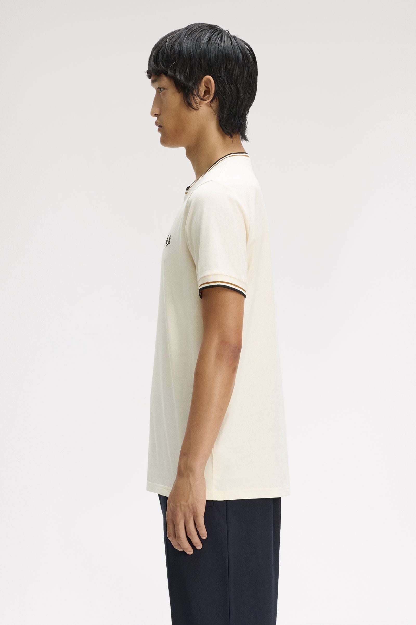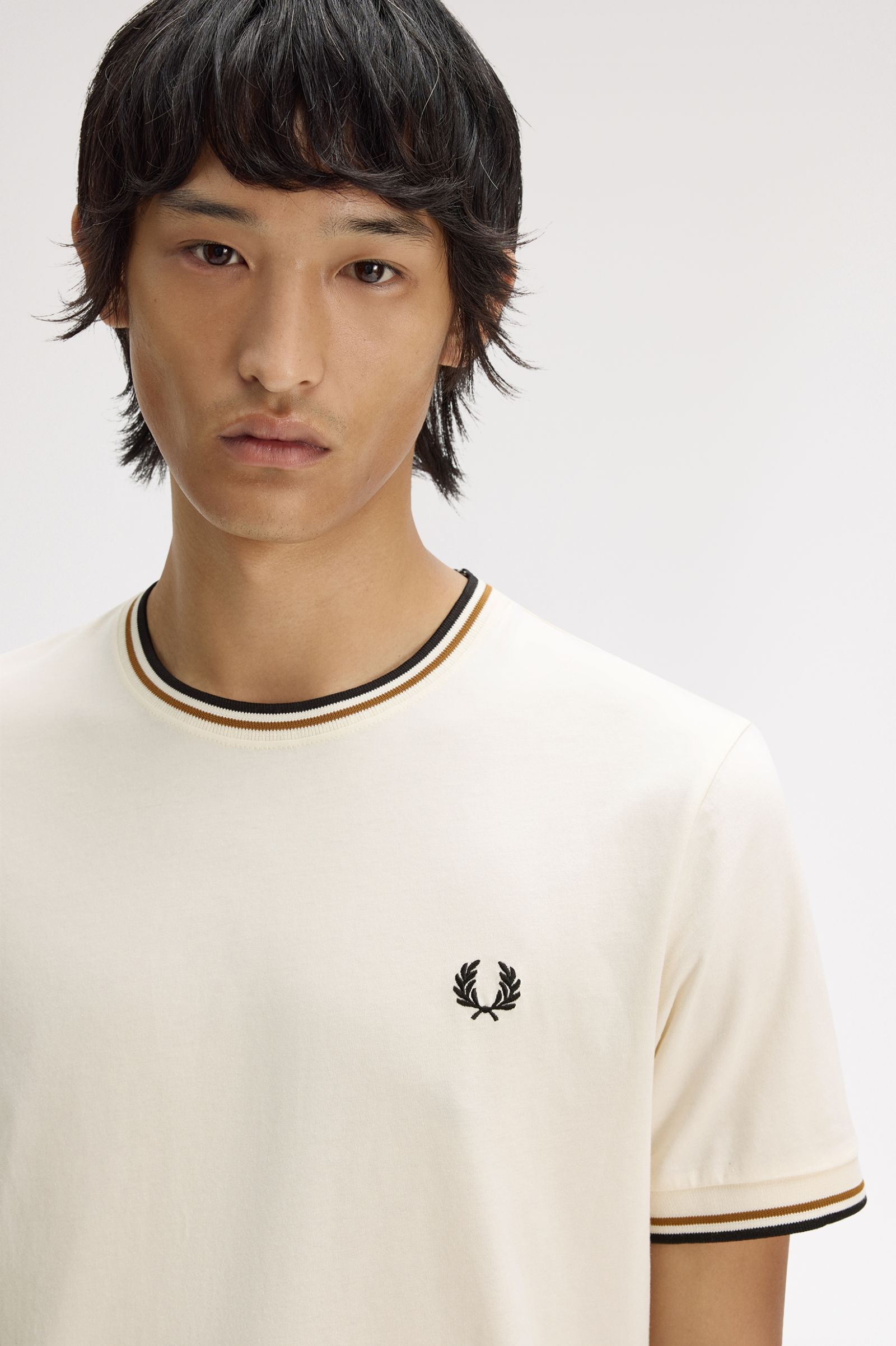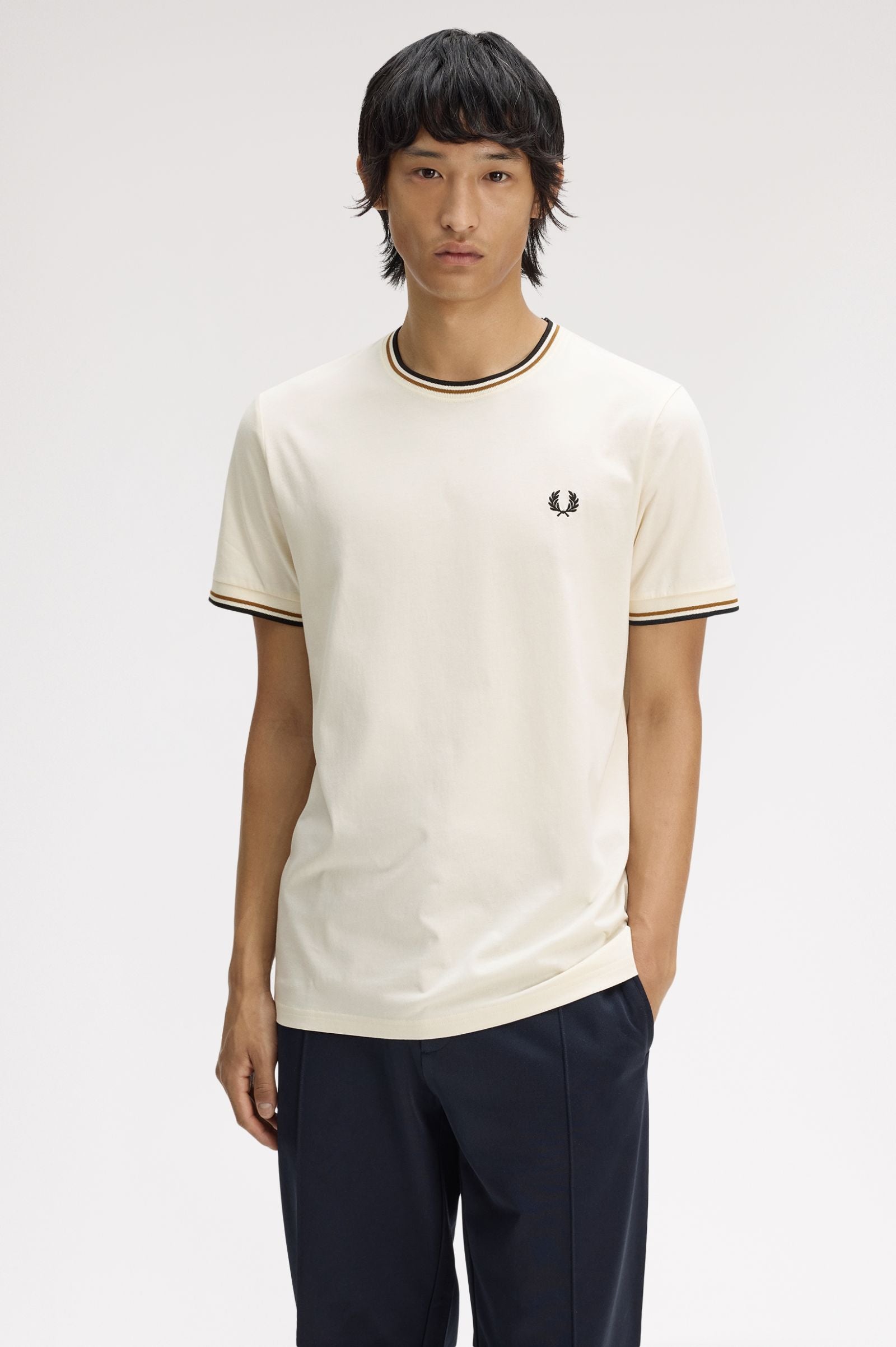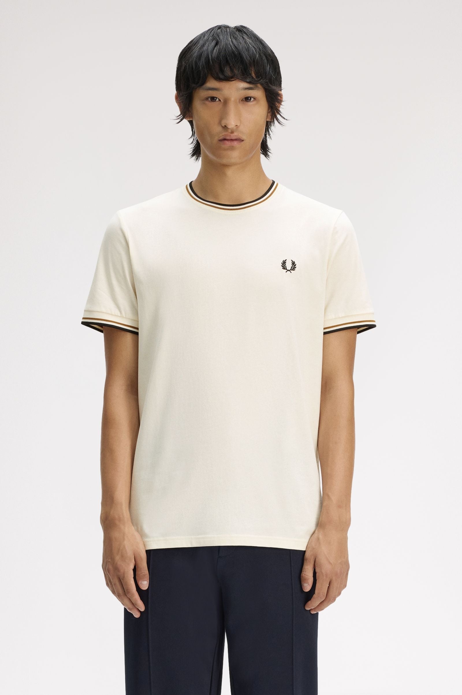Fred Perry Twin Tipped T-Shirt - Ecru/Dark Caramel/Black