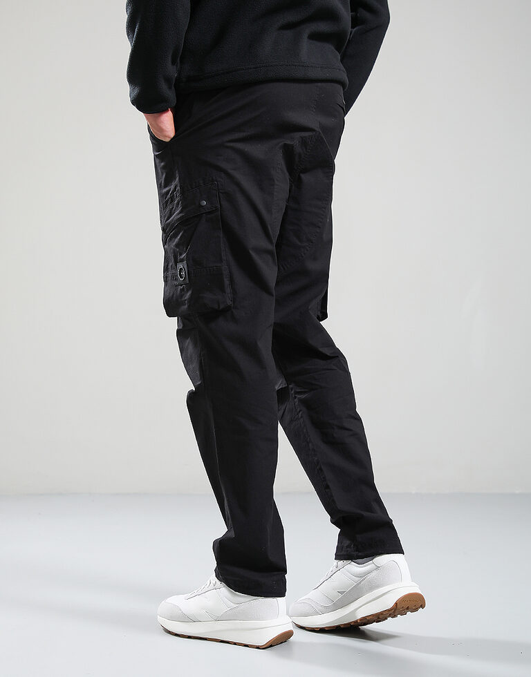 Questi pantaloni cargo sono realizzati in gabardine di cotone elasticizzato bidirezionale con lavaggio vintage. Presentano tasche cargo a soffietto, patta con cerniera e vita regolabile con coulisse DTM e puntali in gomma. Polsini regolabili con elastici, ginocchia plissettate e seduta rinforzata. Tasca posteriore a filetto con chiusura a scatto e micro Siren sulla tasca della gamba sinistra. Vestibilità regolare.