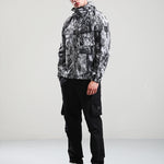 Questa giacca è realizzata in un leggero guscio in nylon ripstop semitrasparente con sovrastampa mimetica Woodland. Presenta cappuccio, colletto interno e inserti sulle maniche in nylon stropicciato a contrasto. Due ampie tasche a soffietto con chiusura in velcro sul petto,