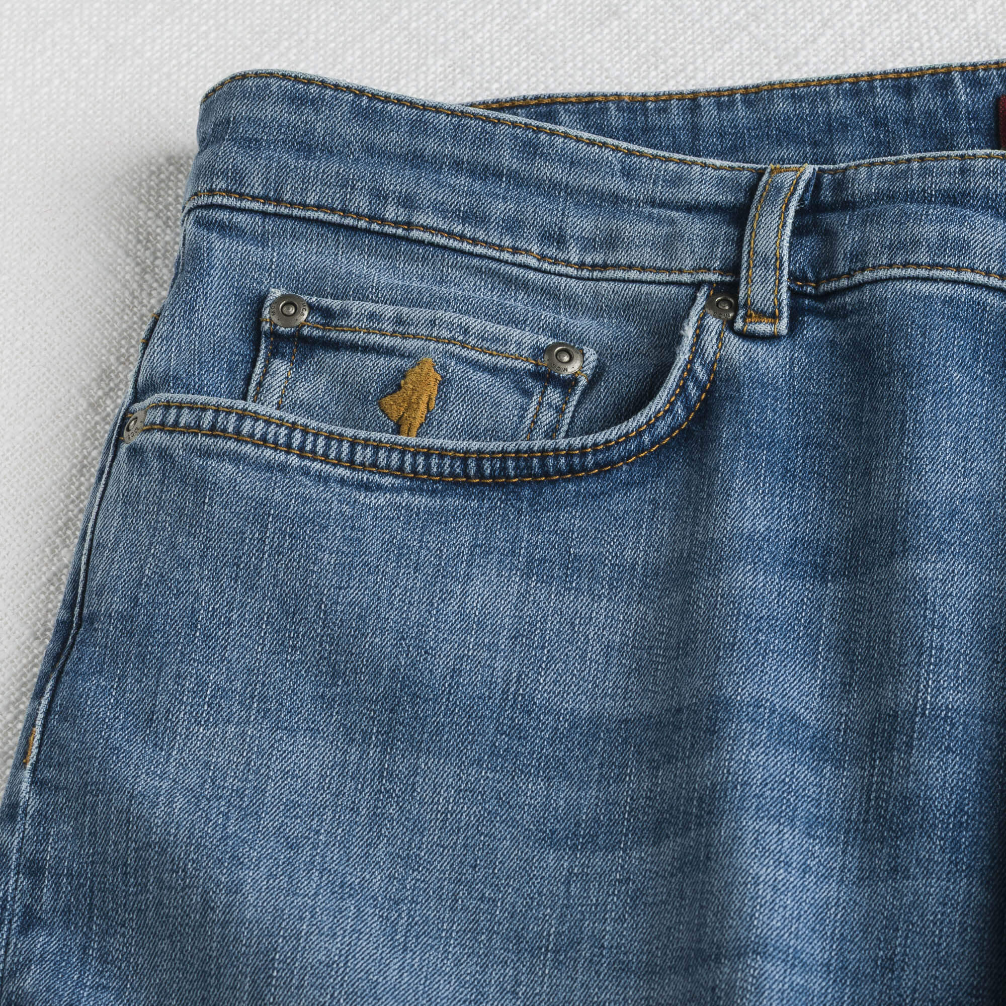 Cinque tasche in denim proposto in due lavaggi, medio e chiaro per adattarsi a diversi tipi di look. La vestibilità regular fit assicura comodità, mentre dettagli come cuciture tabacco, bottoni e rivetti in metallo e salpa in pelle sul retrocinta completano il design con stile. Il ricamo Rider sul taschino sottolinea l’autenticità del capo. Perfetti per look disinvolti e attuali.