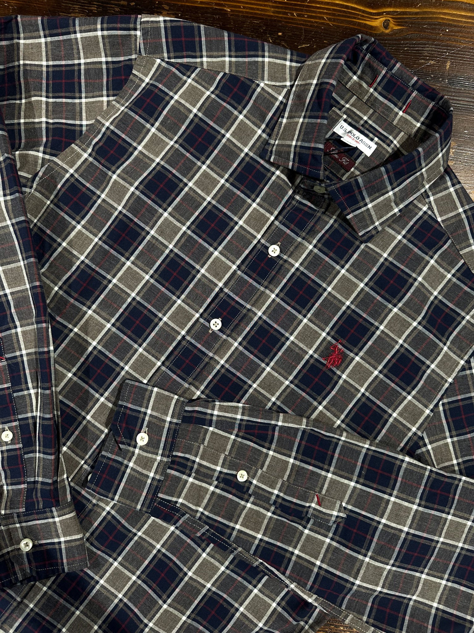U.S. Polo Assn. Camicia Slim Fit Tartan - Grey/Navy
