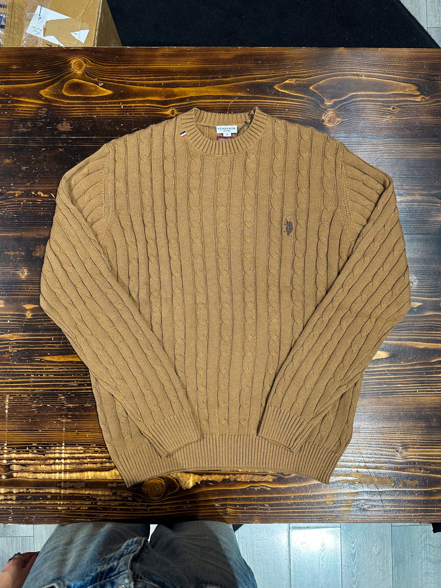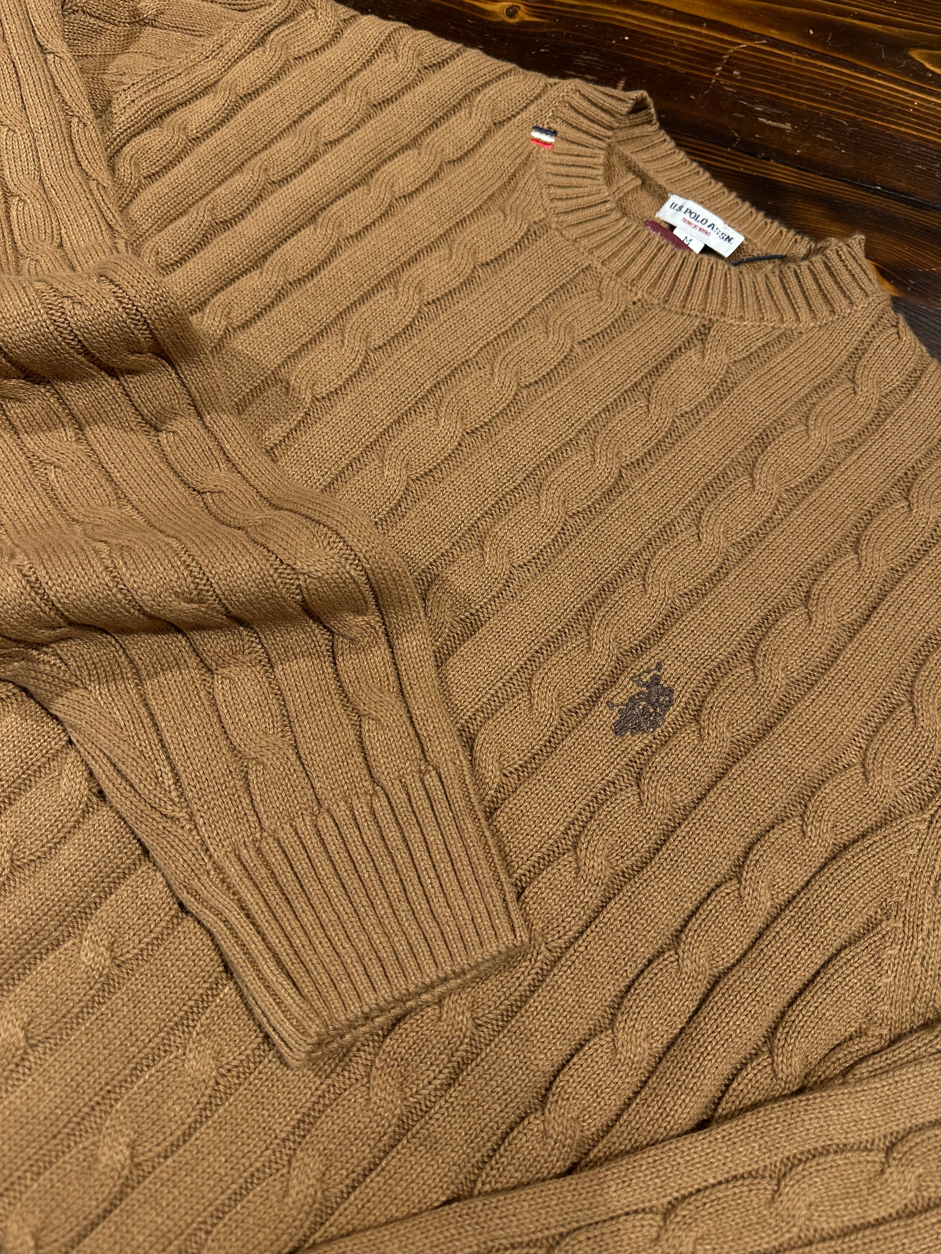 U.S. Polo Assn. Maglia Girocollo a Treccia in Cotone e Cashmere - Beige